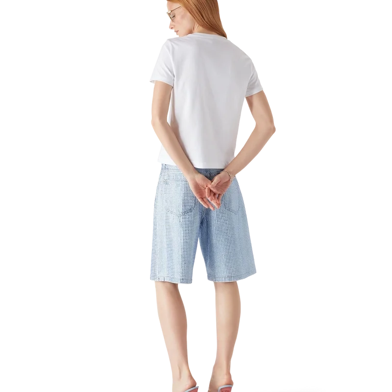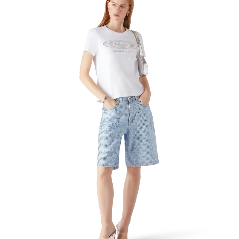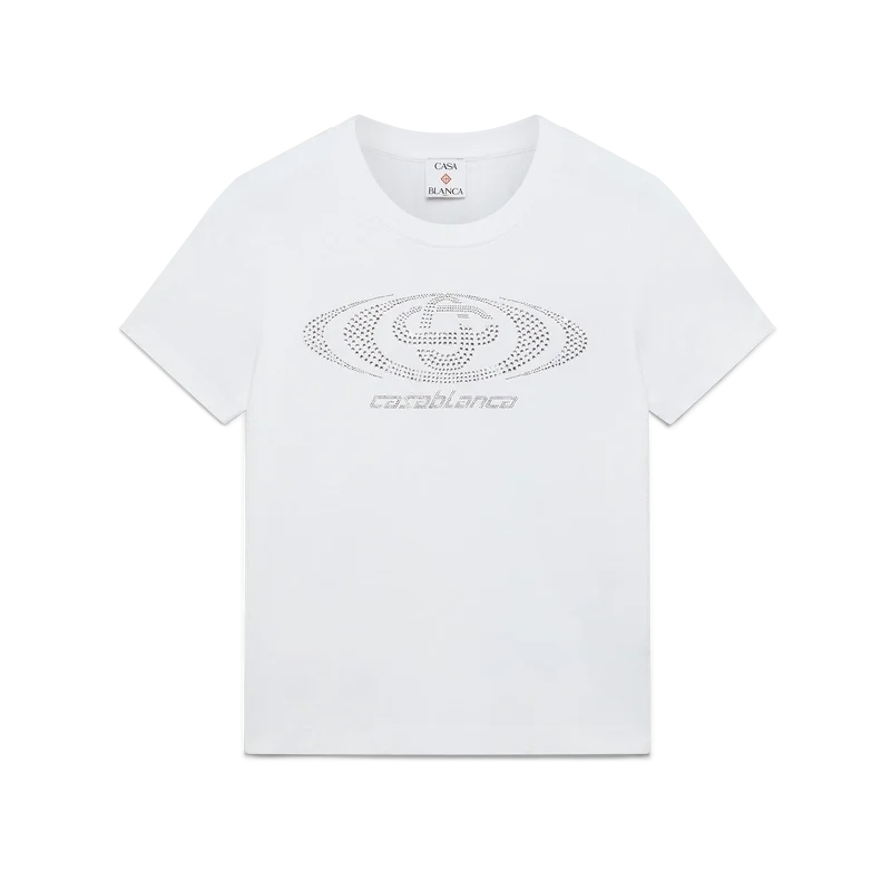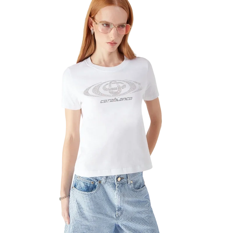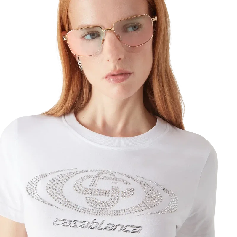 Het getailleerde T-shirt met Crystal Warped-logo is een ontwerp met korte mouwen en het Warped-logo van het huis, vervaardigd uit glaskristallen. Afgewerkt met een klassieke ronde hals.