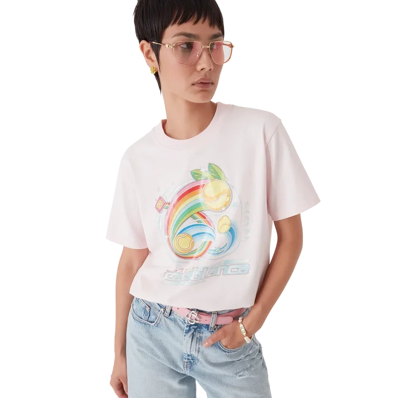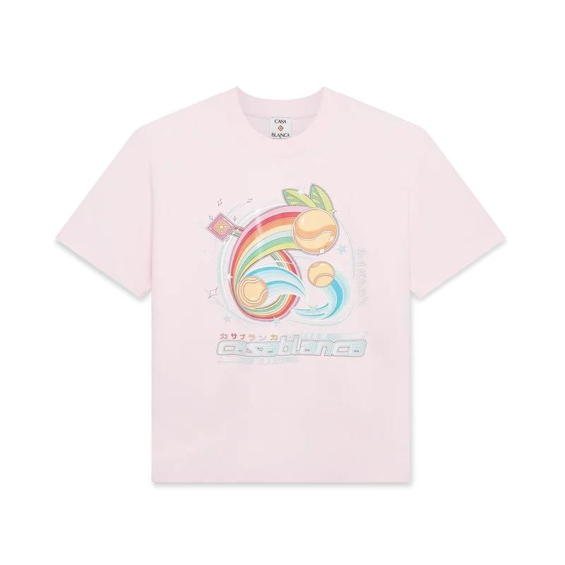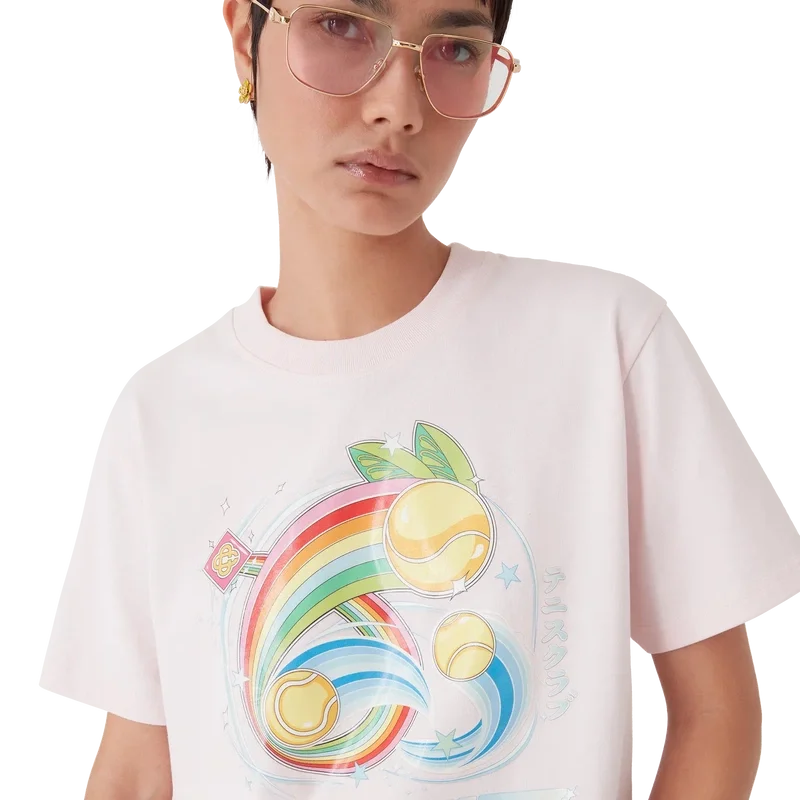 Het Manga Tennis Ball T-shirt is een ontwerp met korte mouwen, gemaakt van biologisch katoen, met seizoensgebonden illustraties die de wereld van kawaii en manga verkennen. Het speelt met de iconografie van Casablanca en gebruikt tennisballen als sinaasappels voor een leuke twist. Afgewerkt met een klassieke ronde hals.