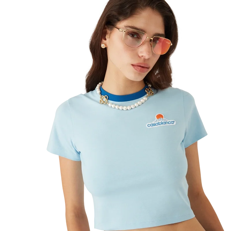 Het Montagne Cropped T-shirt is een cropped ontwerp met korte mouwen, gemaakt van biologisch katoen en voorzien van het huislogo – een logo dat op het eerste gezicht op een berg lijkt, maar bij nader inzien ‘Casa’ vormt. Afgewerkt met een klassieke ronde hals en het Casablanca-logo van het huis – ontworpen voor een slanke pasvorm.