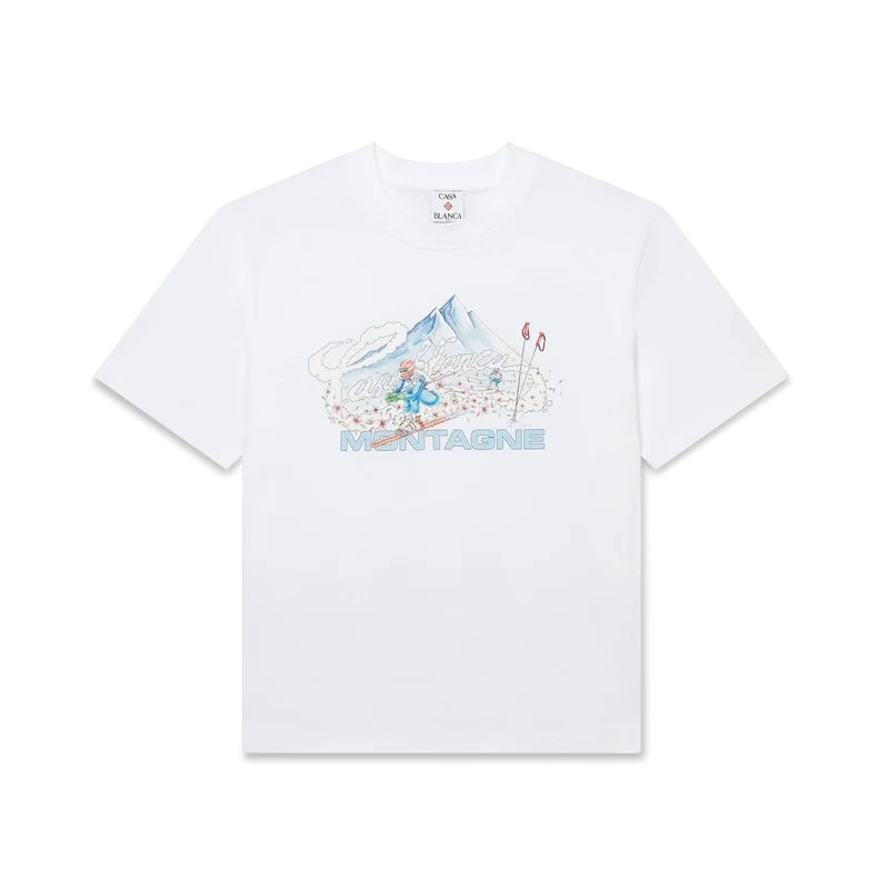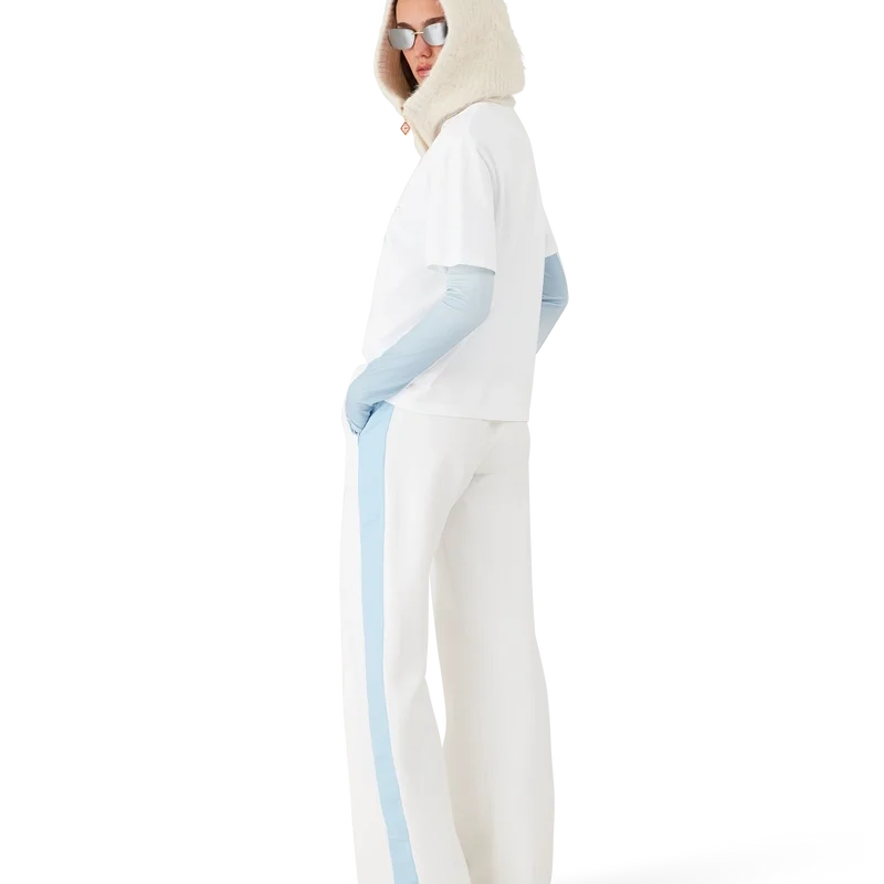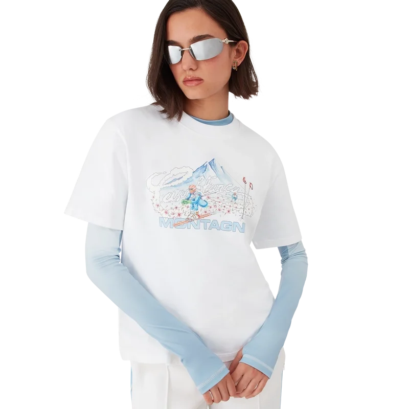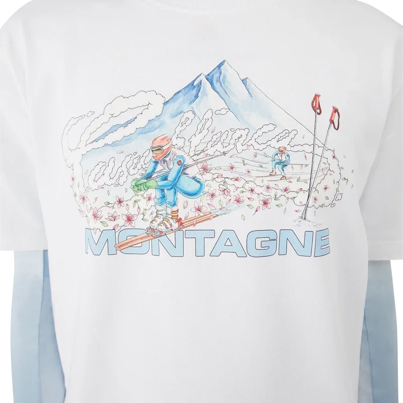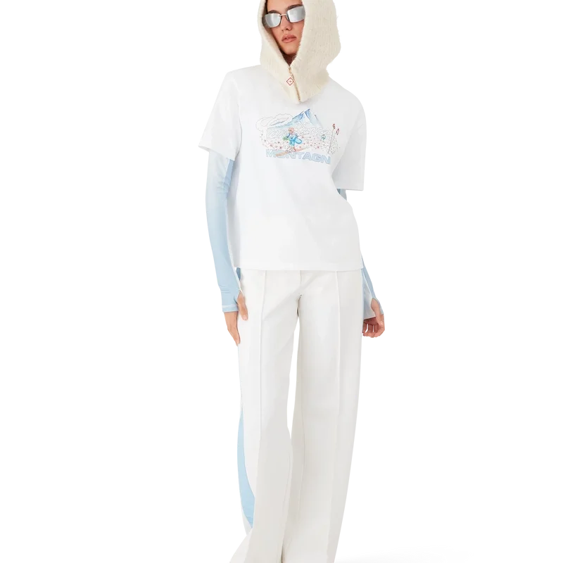 Het Ski T-shirt is een verfijnd Apras-Sport-ontwerp, vervaardigd uit biologisch katoenjersey in wit, geïnspireerd door de minimalistische puurheid van het besneeuwde platteland van Japan. Het put uit de ingetogen schoonheid van de traditionele dorpsesthetiek, waar strakke lijnen en natuurlijke materialen een tijdloos ontwerp bepalen, en belichaamt de codes van sport en vrije tijd.
