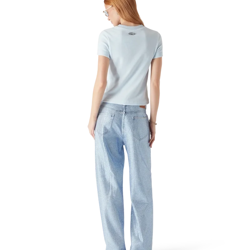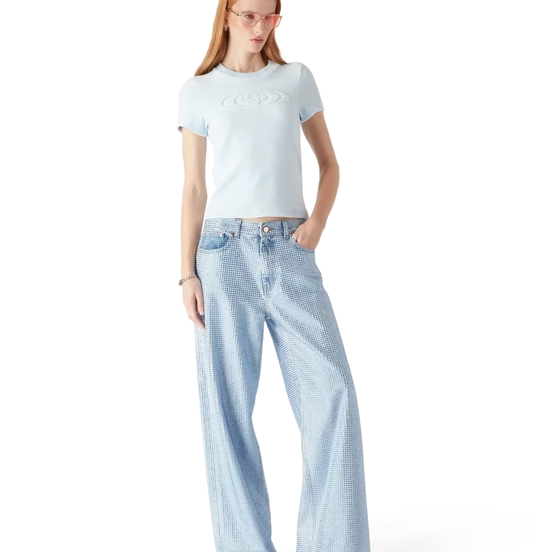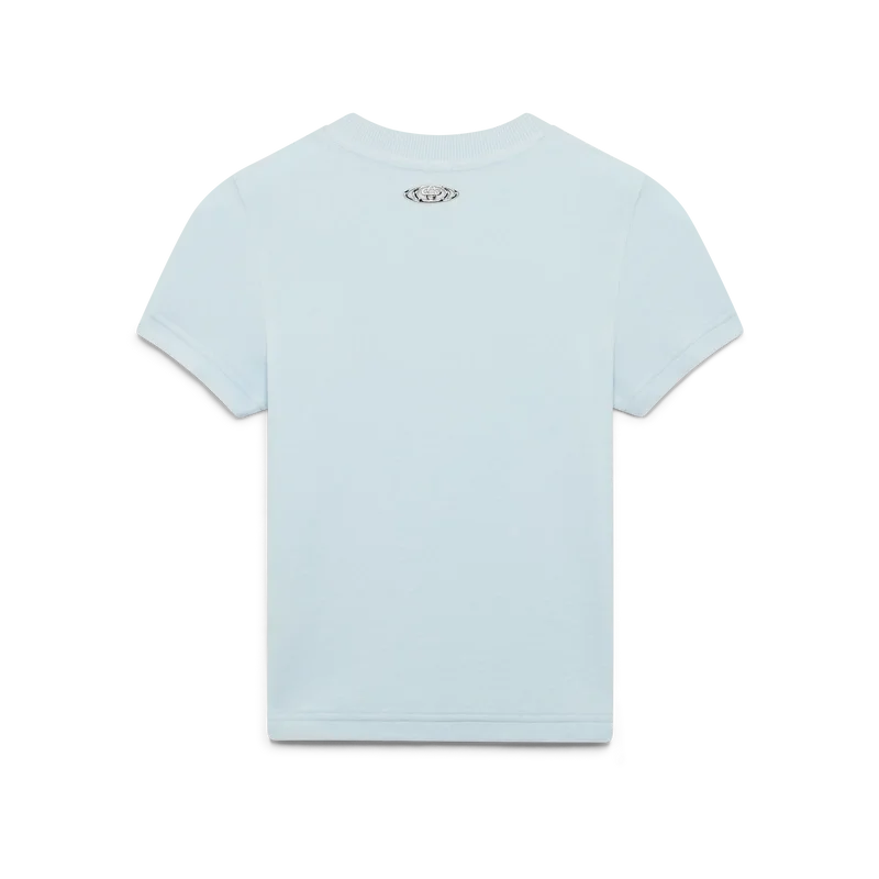 Het velours T-shirt met korte mouwen is een klassiek ontwerp met het Warped-logo van het huis in reliëf in het midden. Afgewerkt met een klassieke geribde ronde hals en een slank silhouet.