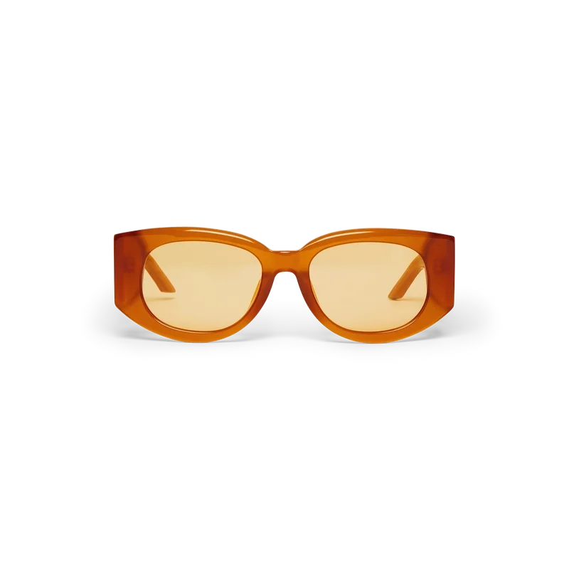 De opvallende oranje acetaatconstructie van de Memphis-zonnebril kenmerkt deze rechthoekige montuurzonnebril. Hier is het kenmerkende Casablanca-Diamond Monogram-logo op de pootjes geplaatst. De glazen met kleurverloop bieden 100% UV-bescherming en het model wordt geleverd in een Casablanca-doos, inclusief een reinigingsdoekje en een garantieboekje.