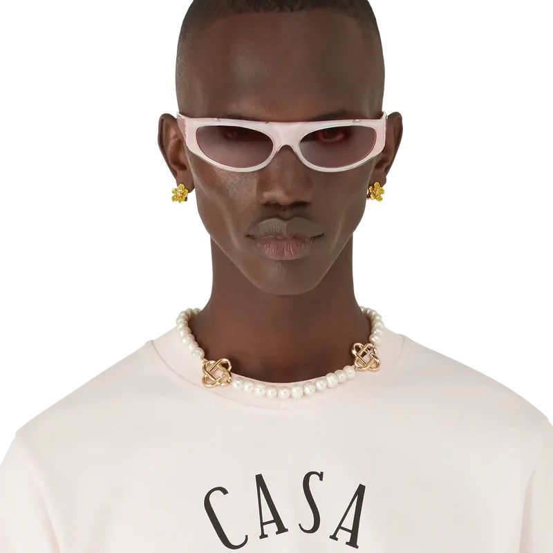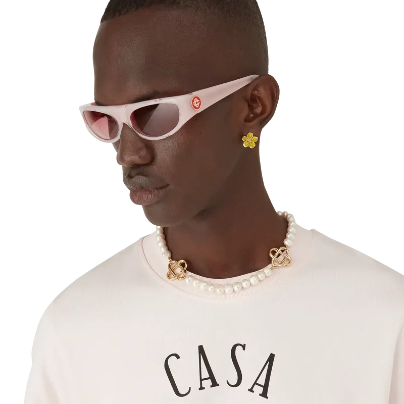 De roze sportzonnebril heeft een rechthoekig montuur van acetaat. Het model is voorzien van het in elkaar grijpende CC-logo van het huis op de pootjes. De roze glazen bieden bescherming en het model wordt geleverd in een Casablanca-doosje, inclusief een schoonmaakdoekje en een garantieboekje.