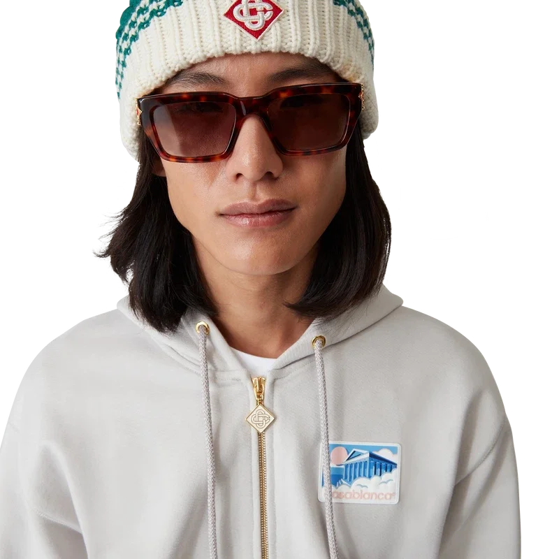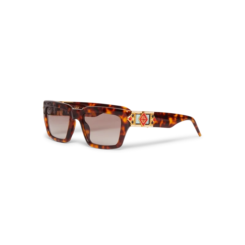 De Tortoiseshell Square Metope zonnebril heeft een vierkant ontwerp en is vervaardigd uit acetaat en verguld messing. Het kenmerkende Casablanca-Diamond Monogram-logo is op de pootjes aangebracht. De glazen bieden 100% UV-bescherming en het model wordt geleverd met een Casablanca-doosje, een schoonmaakdoekje en een garantieboekje.