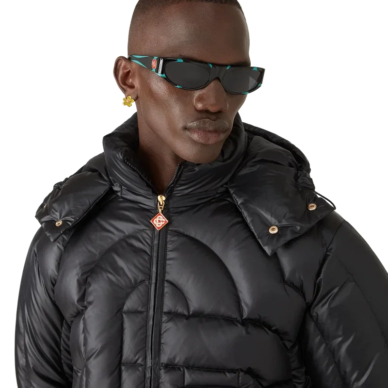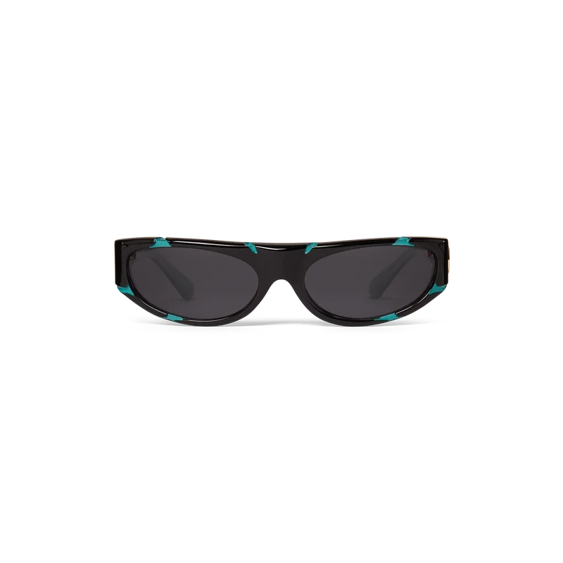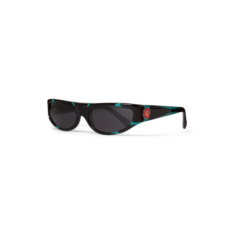 De zwarte en mintkleurige sportzonnebril heeft een rechthoekig montuur van acetaat met het in elkaar grijpende CC-logo van het huis op de pootjes. De zwarte glazen bieden bescherming en de set wordt compleet geleverd met een Casablanca-doosje, een poetsdoekje en een garantieboekje.