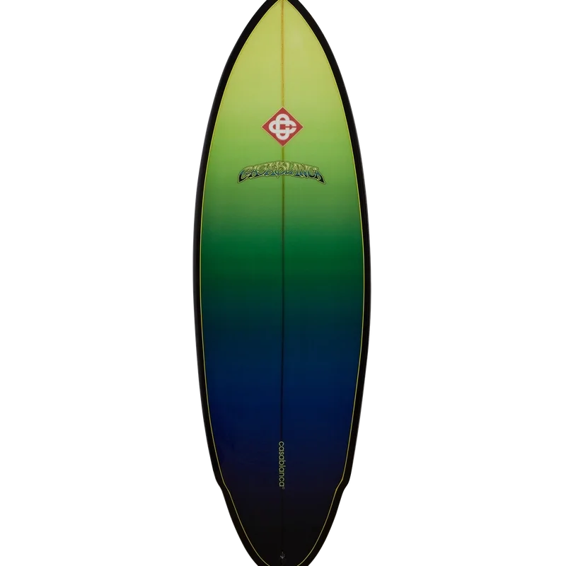 Het Casablanca-surfboard meet 178,2 cm (van neus tot staart) x 53 cm (van rail tot rail op het breedste punt). Dit artikel wordt niet geleverd met vinnen of leash.