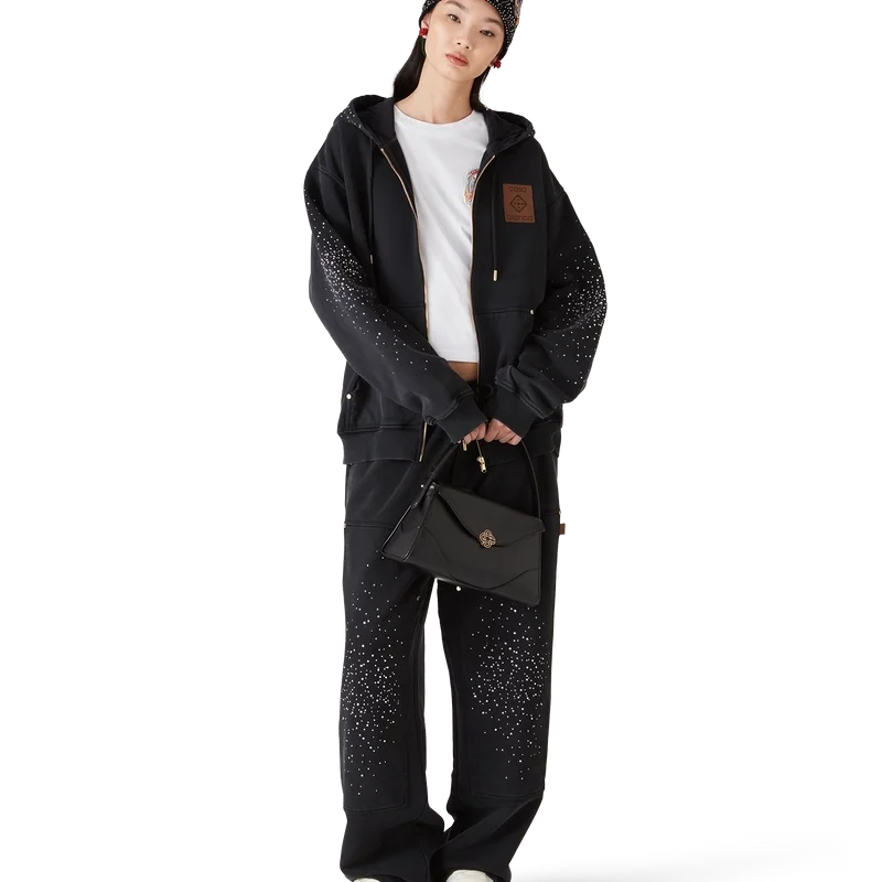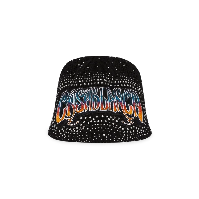 De Gothic Crystal Embellished Beanie is een geweven ontwerp gemaakt van wol en versierd met kristallen kralen. Afgewerkt met geborduurde, handgetekende typografie van het Casablanca-logo, geïnspireerd op het gotische lettertype dat in tatoeages wordt gebruikt.
