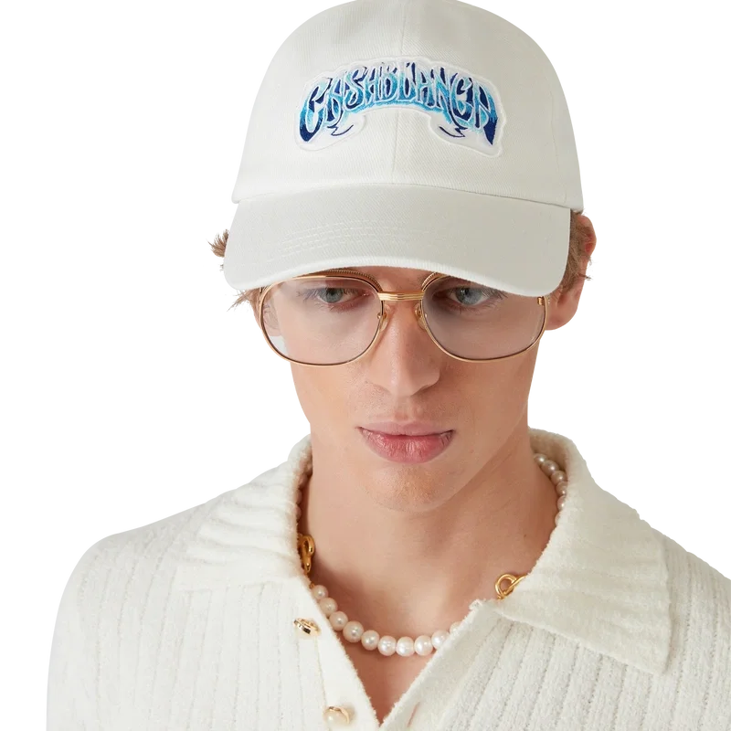 De Blue Fade Cap is een klassieke baseballpet, vervaardigd uit katoen met handgetekende typografie van het Casablanca-logo, geïnspireerd op het gotische lettertype dat in tatoeages wordt gebruikt. Afgewerkt met een klep en een vergulde verstelbare gesp.