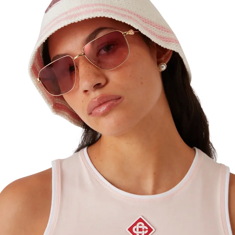 De Bourgeoisie Girl gehaakte muts heeft een klassiek bucket-silhouet, met een Casablanca Warped-logopatch die textuur toevoegt aan het op sportkleding geïnspireerde ontwerp.