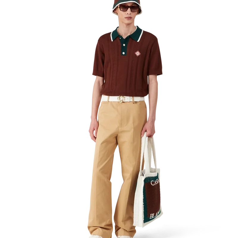 De Stripe Crochet Hat is een buckethoed, vervaardigd van een zacht, open geweven katoenen haakstof – de ultieme zomerse must-have. Afgewerkt met een groene rand met witte randdetails en het kenmerkende diamantlogo van het huis in het midden.