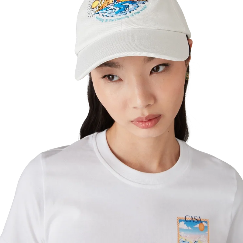 De Oasis Cap is een klassieke baseballpet, vervaardigd van katoen en voorzien van het seizoensgebonden artwork van het huis met ontwerpelementen uit de natuur, architectuur en tennis. Afgewerkt met een klep en een vergulde verstelbare gesp.