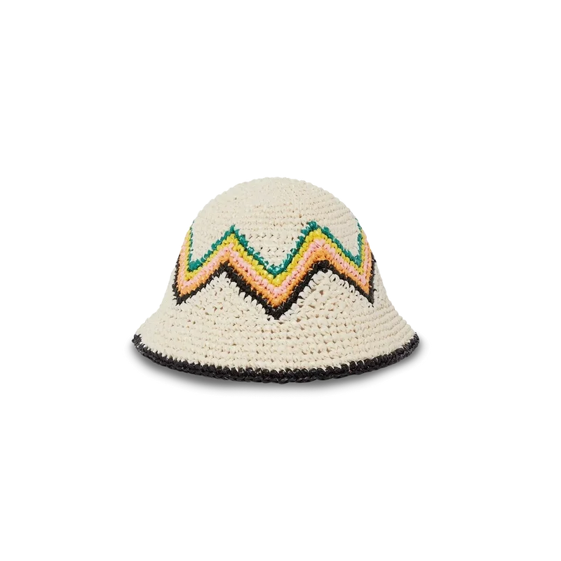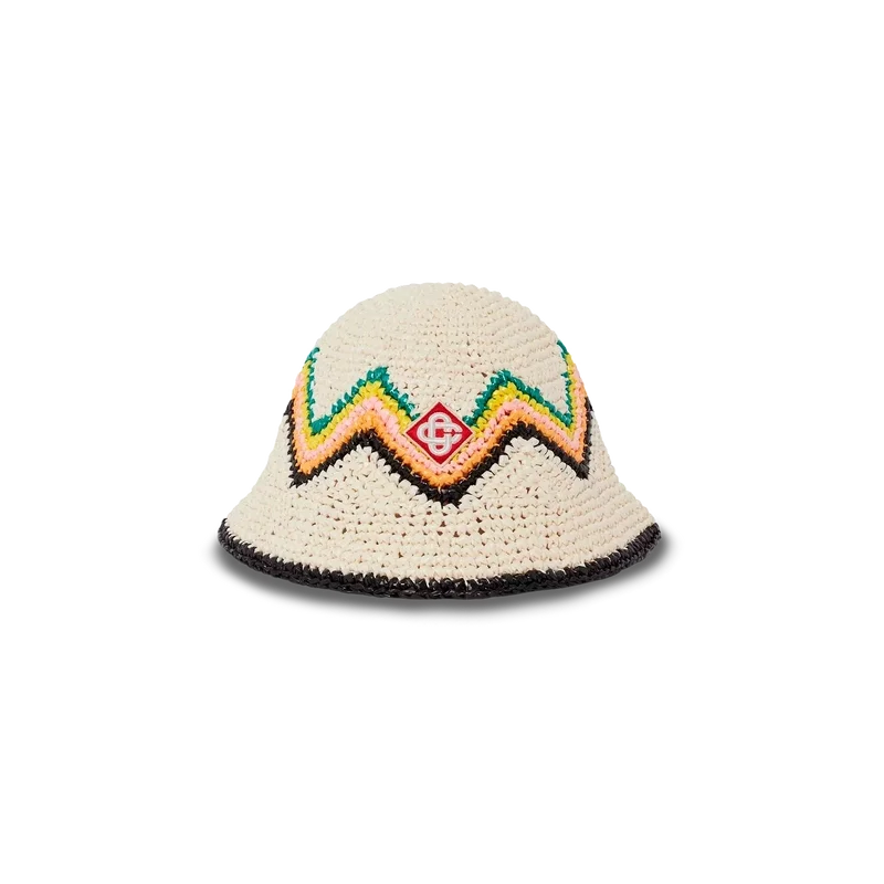 De geraffia-gehaakte hoed is een model in emmerstijl, vervaardigd uit een zacht, open geweven gehaakte stof in ons seizoenskleurenpalet van groen en wit – de ultieme zomerse must-have. Afgewerkt met een Casablanca-Diamond Monogram-applicatie in het midden.