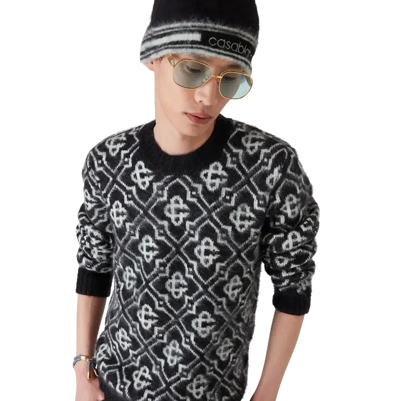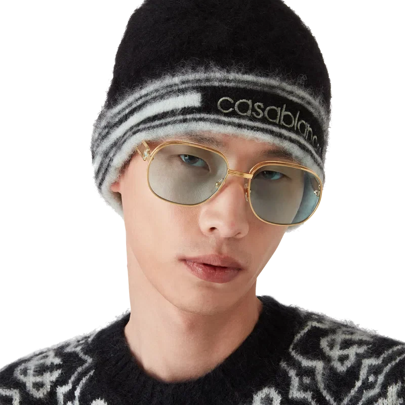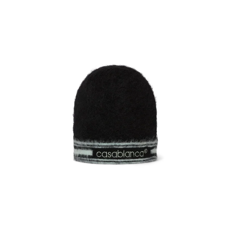 De gestreepte mohair muts is een gebreid ontwerp, gemaakt van mohairstof. Afgewerkt met het Casablanca-logo en streepjes rond de rand.