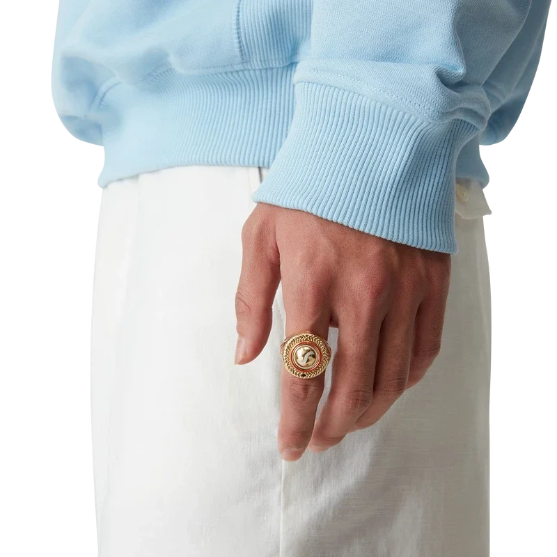 De Sports Medallion Ring is vervaardigd uit verguld messing en handgeschilderd email. Afgewerkt met het kenmerkende diamantlogo van het huis op de zijkanten.