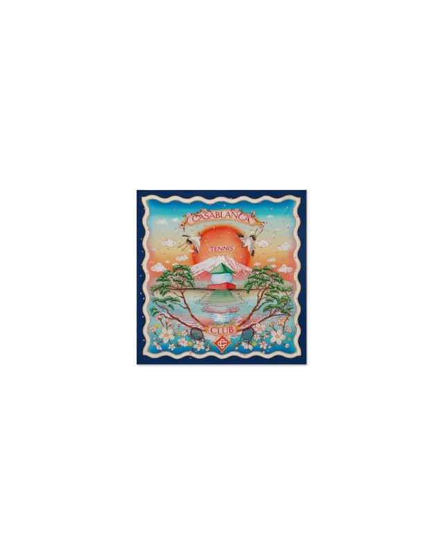 De Tennis Club Medium zijden sjaal is een bedrukt ontwerp, vervaardigd uit zijden twill met het kenmerkende artwork van het huis. Het maakt gebruik van onze klassieke lay-out, maar met traditionele Japanse kunst, waardoor het een zeer sterk verhaalvertellend stuk is. Afgewerkt met een blauw-wit gestreepte golfrand.