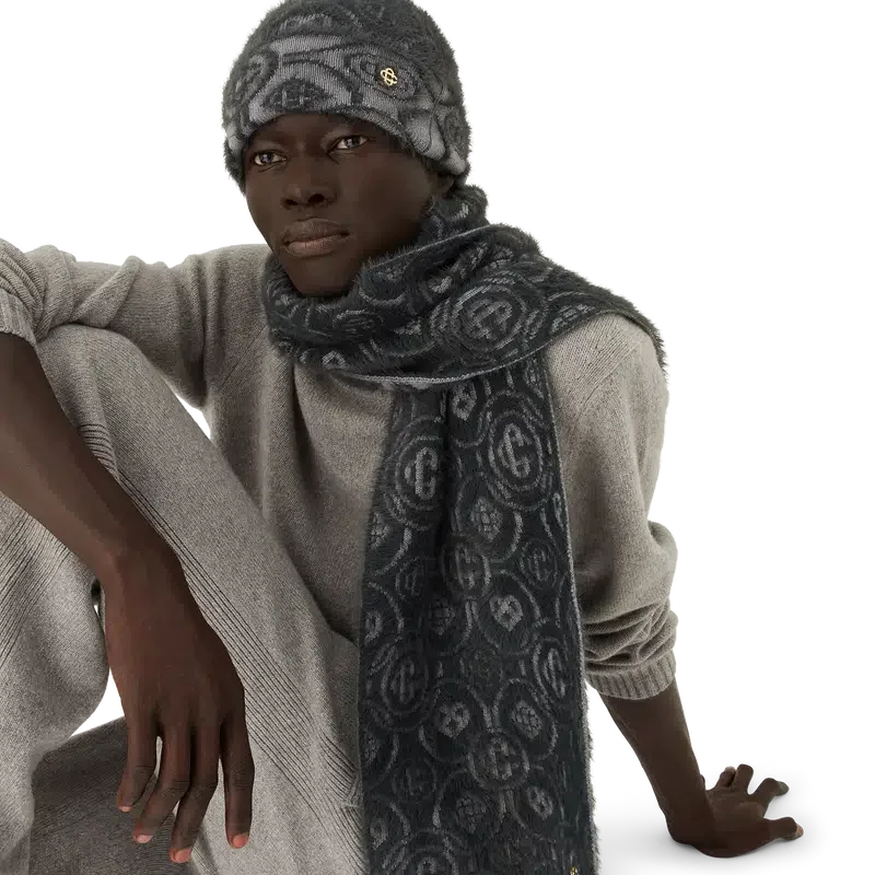 De zachte Monogram-mohair sjaal is een omkeerbaar gebreid ontwerp met het hartje en de in elkaar grijpende CC-monogrammen van het huis.