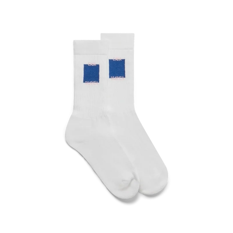 De blauwe Casa vierkante sokken zijn gemaakt van een katoenmix en voorzien van het gestapelde logo van het huis met een blauw vierkant ontwerp. Afgewerkt met geribde boorden.