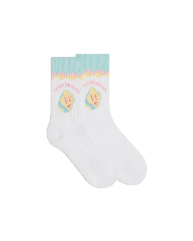 De For the Love of Dance-sokken hebben een verfijnd ontwerp met de smiley en de evolutie daarvan als grafisch element binnen de house-muziekscene. Afgewerkt met een verspringend gestreept randdetail, het kenmerkende Casablanca-logo van het huis en geribde pijpen.