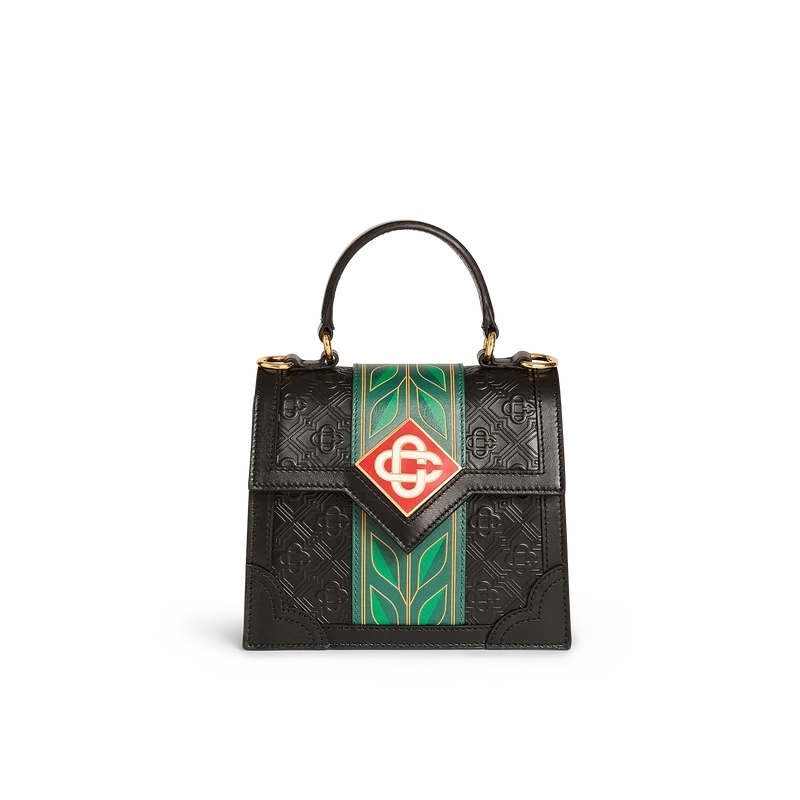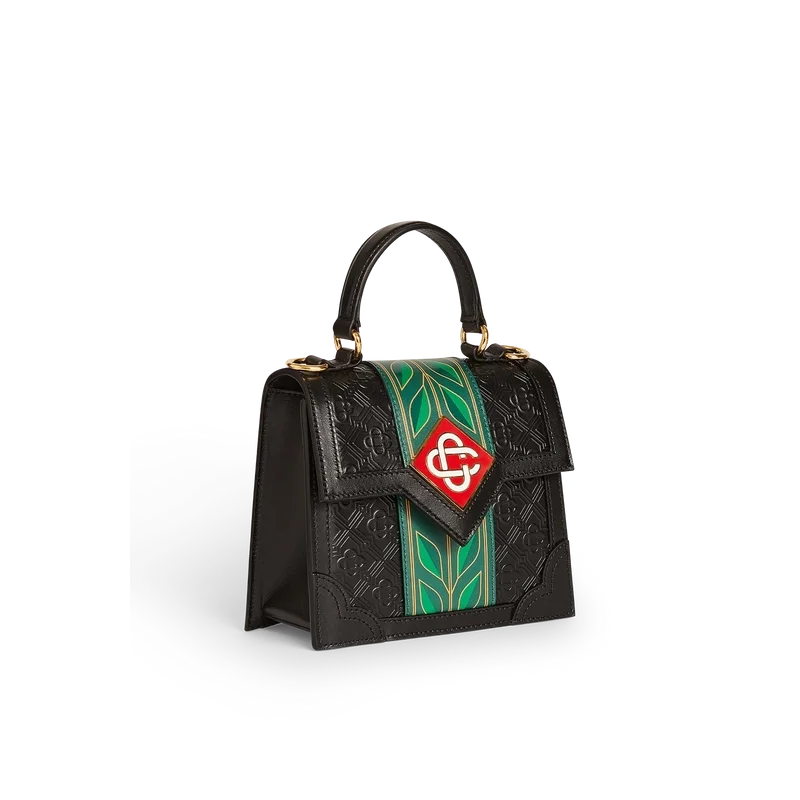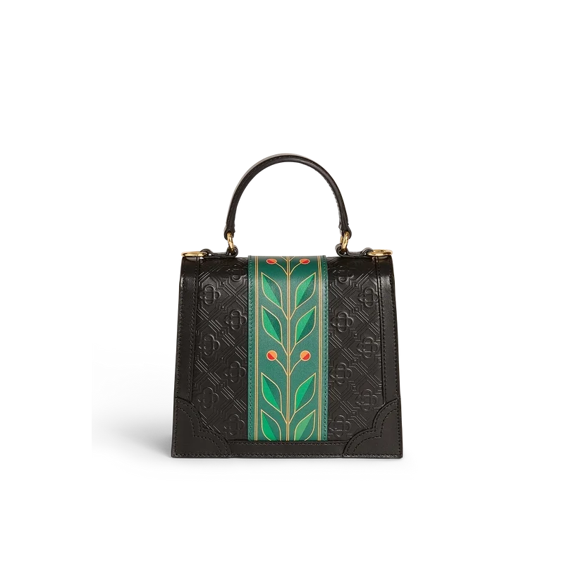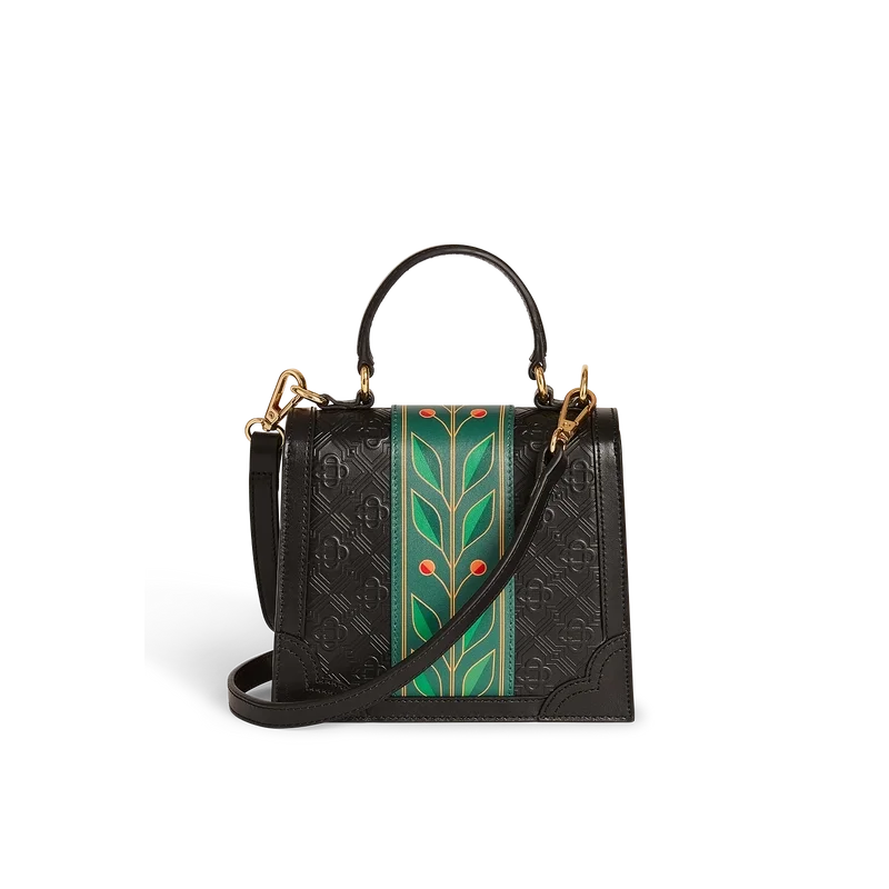 De zwarte Laurel Mini Jeanne-tas is een klassiek ontwerp, vervaardigd uit Italiaans kalfsleer met Laurel Monogram-motief. Afgewerkt met het kenmerkende Laurel-motief van het huis, een leren riem en vergulde messing details.