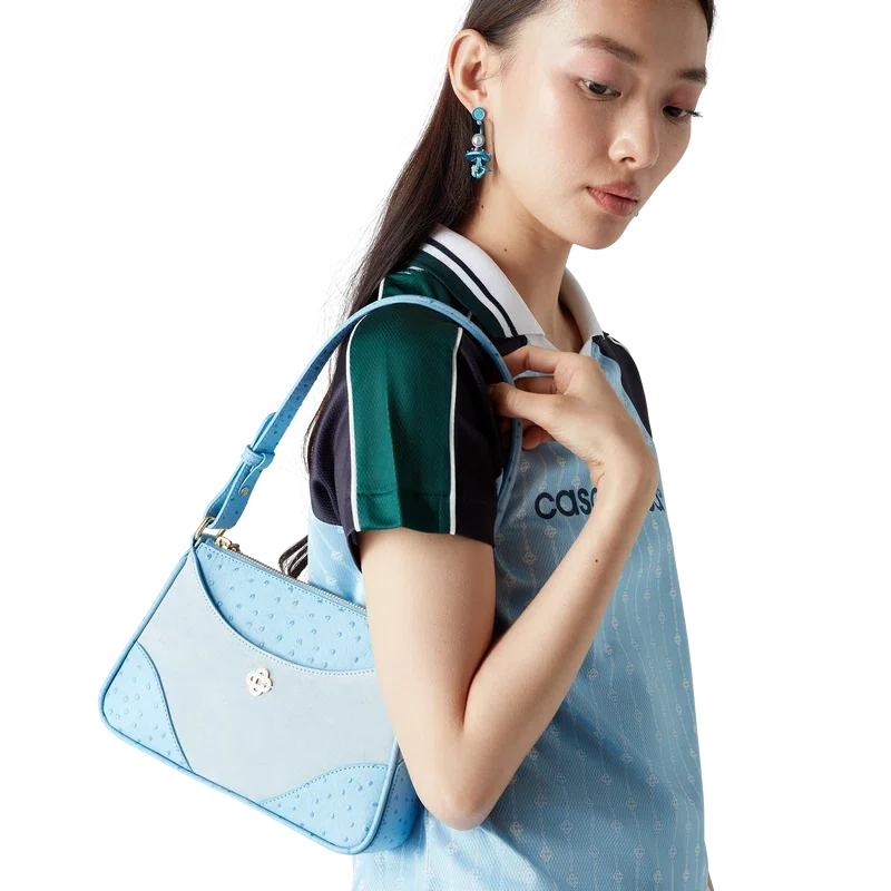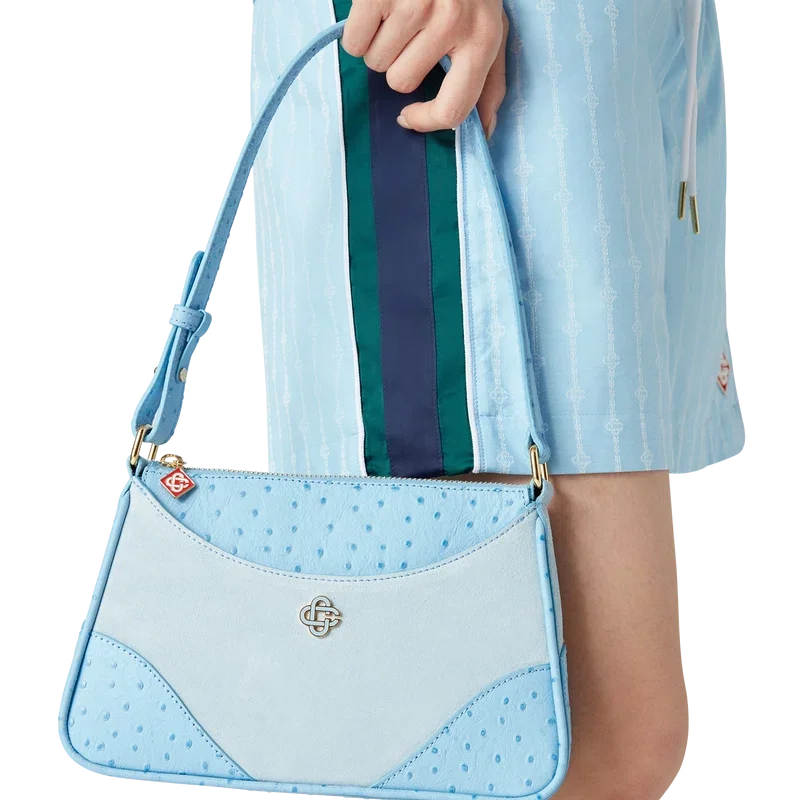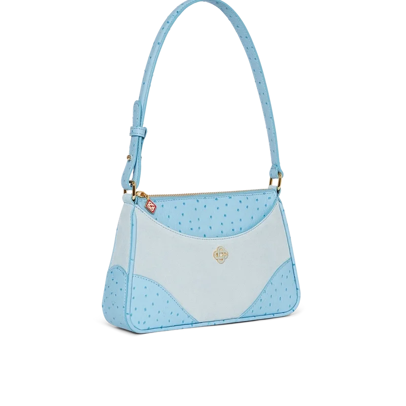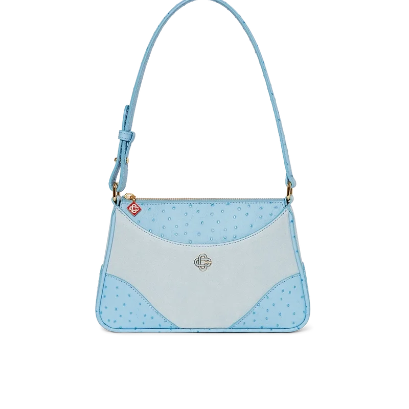 De Blue Jeanne Pouchette-schoudertas is vervaardigd uit Italiaans kalfsleer en versierd met het in elkaar grijpende CC-logo van het huis op hoogwaardige, vergulde metalen details. Afgewerkt met een ritssluiting aan de bovenkant met het rode Diamond Monogram van het huis, een schouderriem, twee hoofdvakken, een canvas voering en een binnenvak. Geleverd met een stofzak en doos met merklogo.