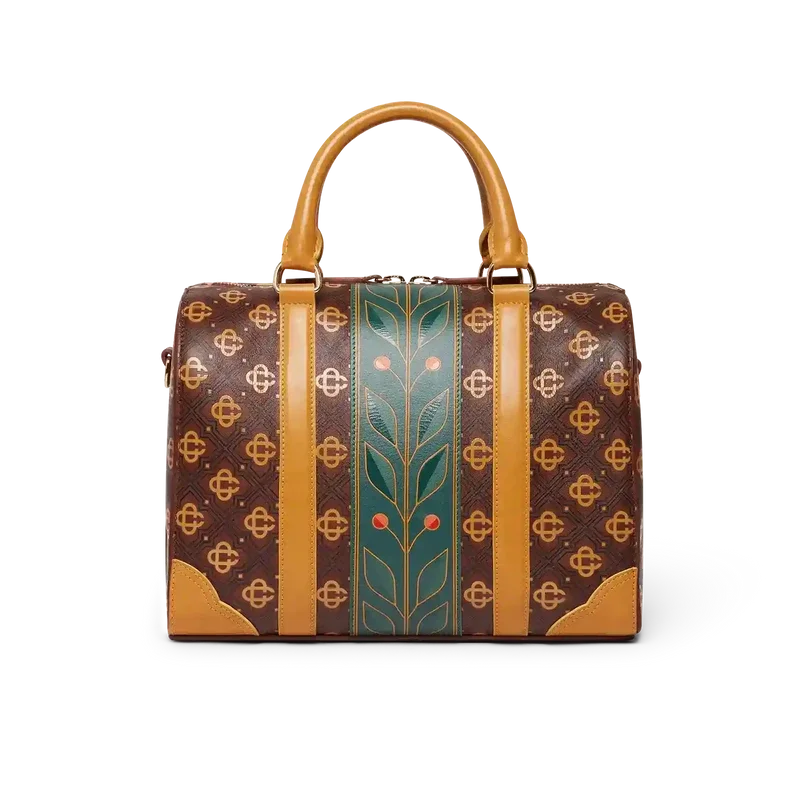 De bruine Mini Monogram Weekendtas is vervaardigd uit Italiaans leer en versierd met het kenmerkende diamantlogo van het huis op de zijkant. Afgewerkt met het kenmerkende laurierbladmotief van het huis, handvatten, een ritssluiting, een schouderriem en een binnenvak. Geleverd met een geschenkdoos, een stofzak met merklogo en een productinformatieboekje.