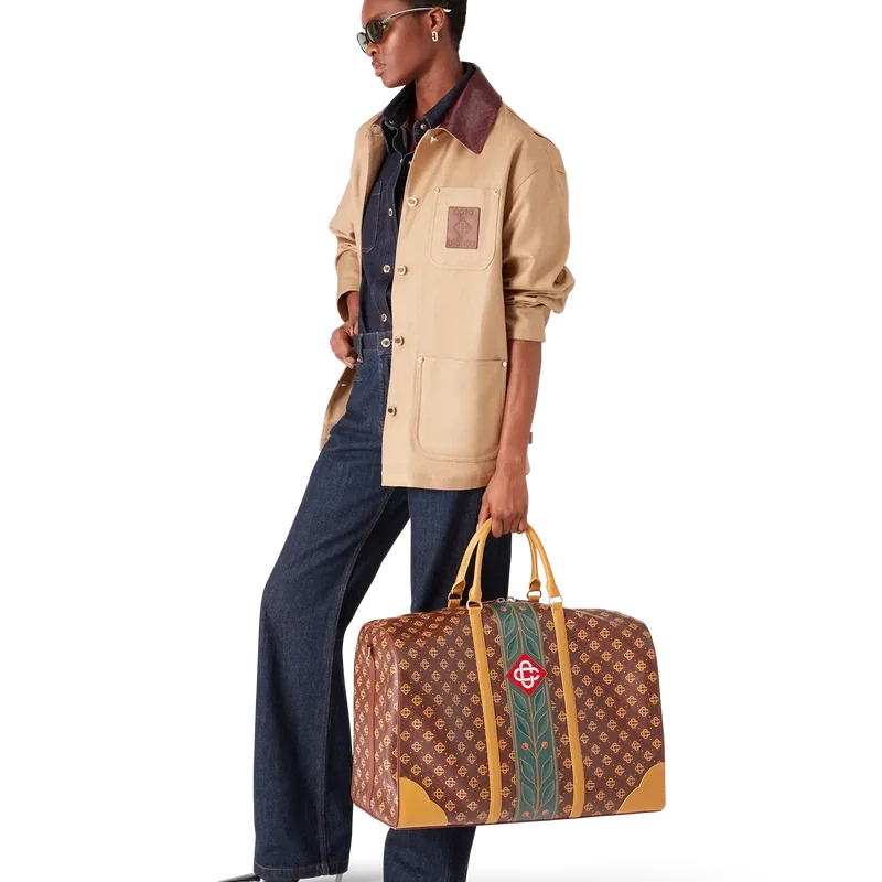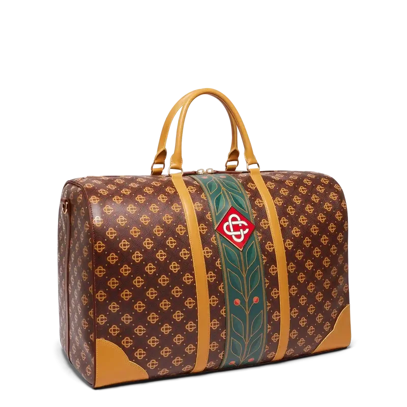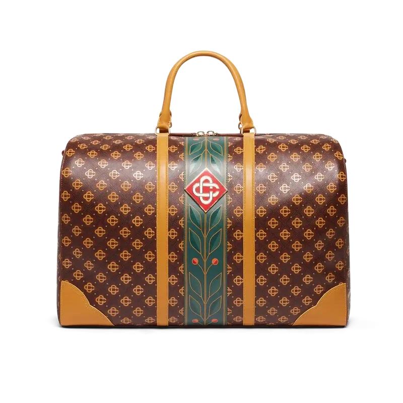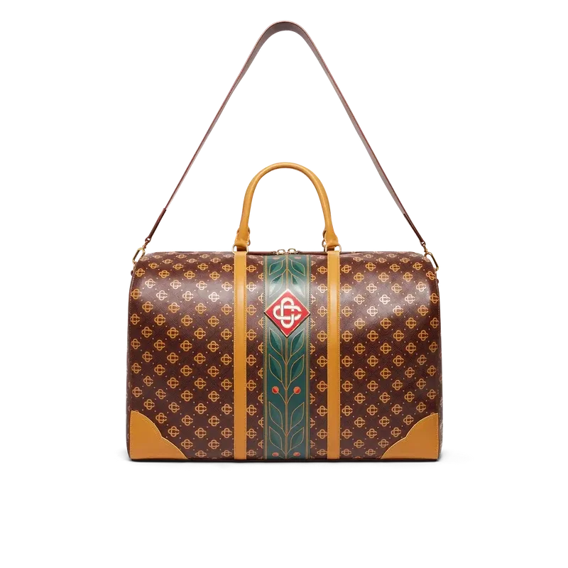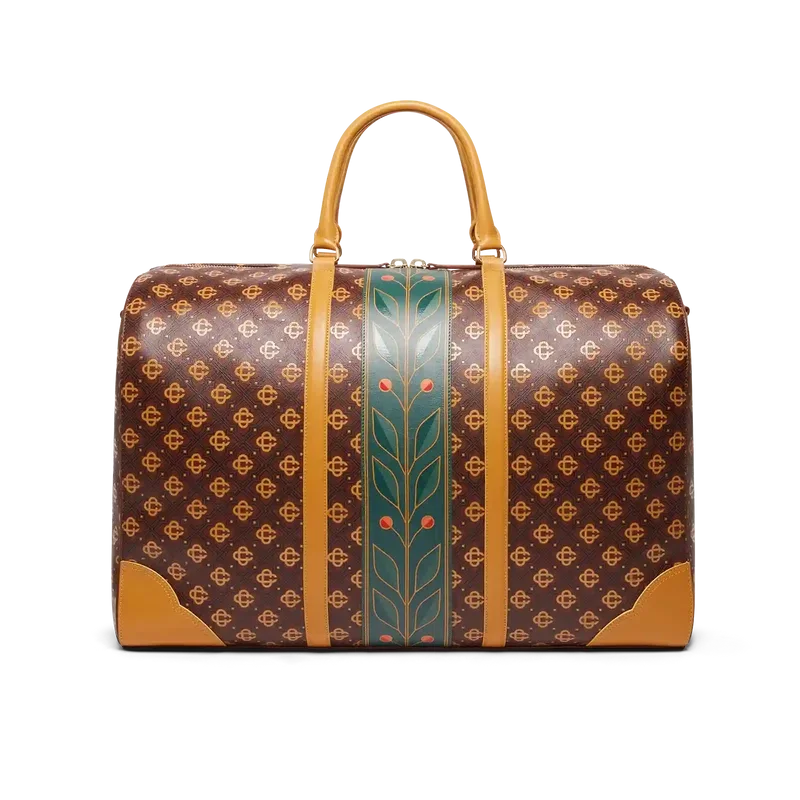 De bruine Monogram Weekender-tas is vervaardigd uit Italiaans leer en versierd met het kenmerkende diamantlogo van het huis op de zijkant. Afgewerkt met het kenmerkende laurierbladmotief van het huis, handvatten, een ritssluiting, een schouderriem en een binnenvak. Geleverd met een geschenkdoos, een stofzak met merklogo en een productinformatieboekje.