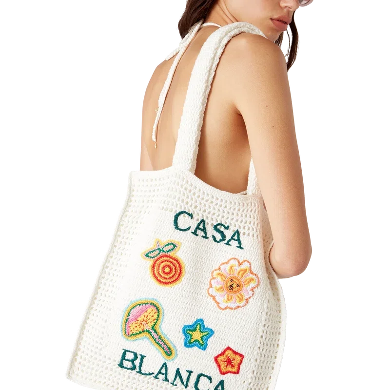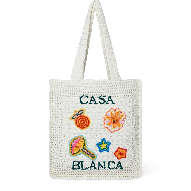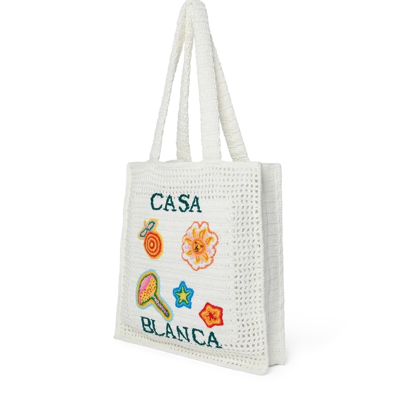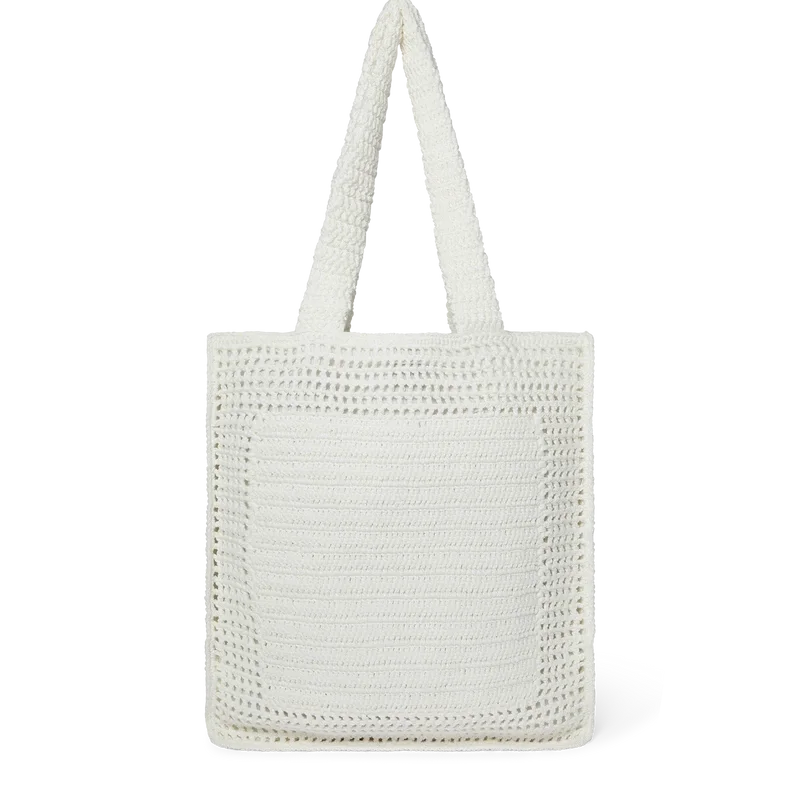 De Motif gehaakte tas is een gebreide tas gemaakt van gehaakt katoen en heeft een slouchy silhouet. Afgewerkt met een geborduurd gestapeld logo, klassieke designelementen en hengsels waarmee de tas over de schouder of in de hand gedragen kan worden.