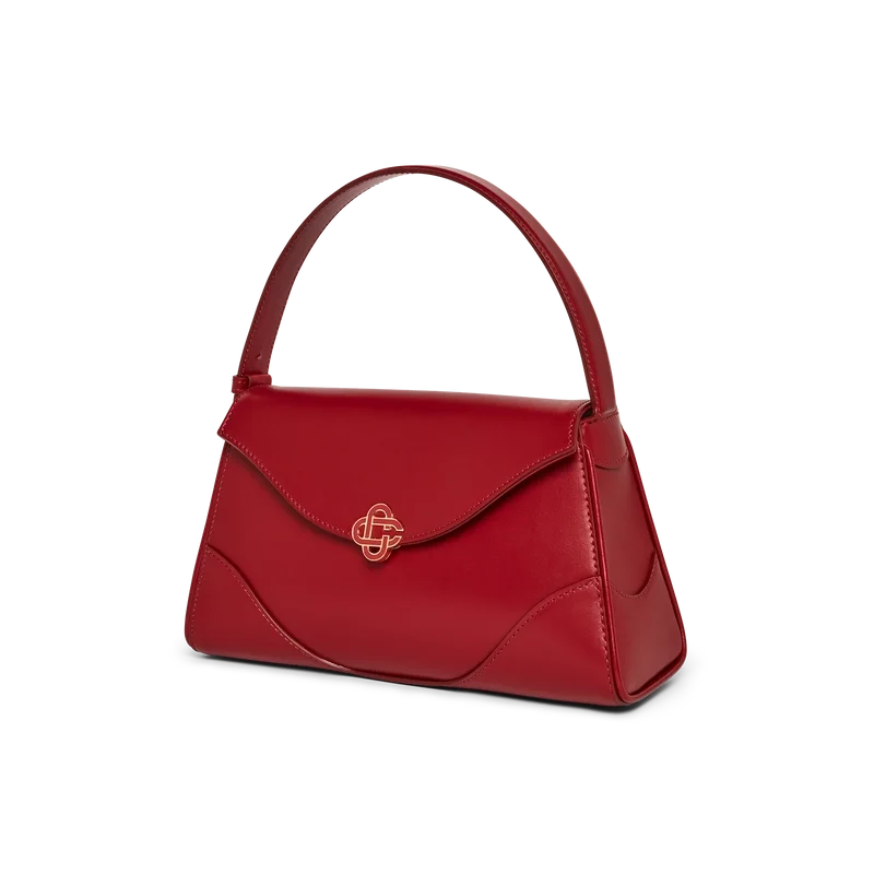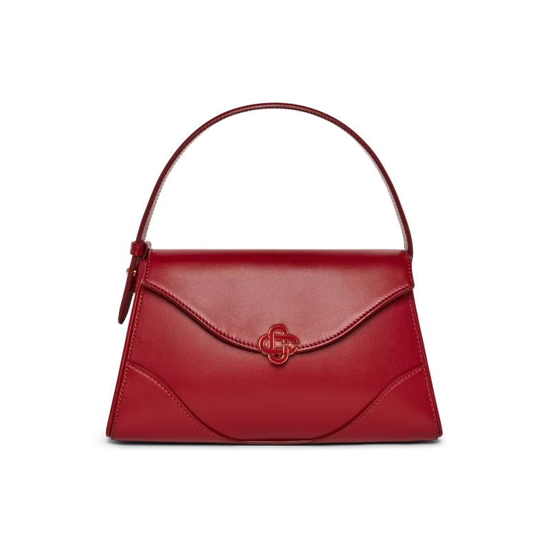 De rode kleine Jeanne-tas is vervaardigd uit Italiaans kalfsleer en versierd met het rode Diamond Monogram van het huis op hoogwaardige metalen hardware, die dient als sluiting.