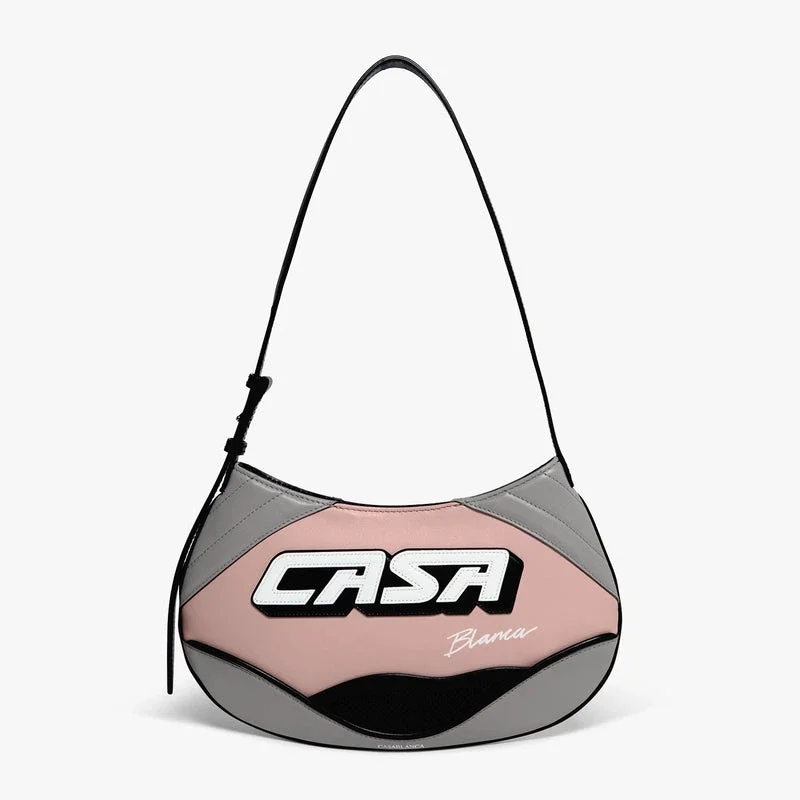 De roze slanke biker-tas is vervaardigd uit leer en voorzien van het Casa-opschrift van het huis op de voorkant. Afgewerkt met een schouderriem, ritssluiting, contrasterende biezen, verzilverde hardware en een strak silhouet, ontworpen voor moeiteloos dagelijks gebruik. Geleverd met een geschenkdoos, een stofzak met merklogo en een productinformatieboekje.