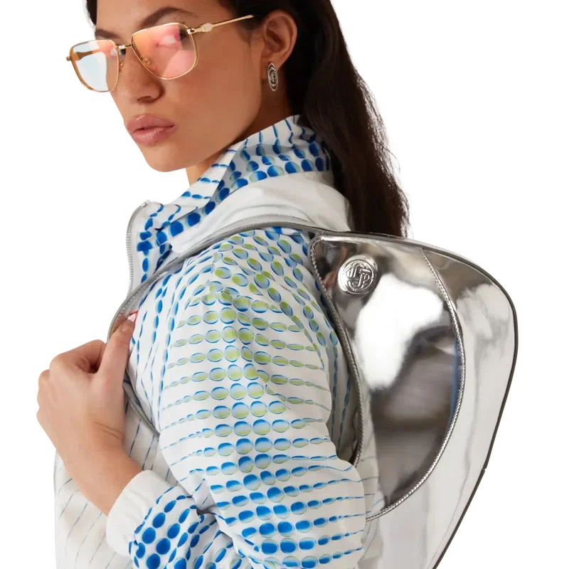 De Silver Raver Bag is een avondtasje dat dicht tegen het lichaam draagt, vervaardigd uit geiten- en kalfsleer, voorzien van het ronde Casablanca-logopatch van het huis. Afgewerkt met een schouderriem, ritssluiting en een intern steekvak.