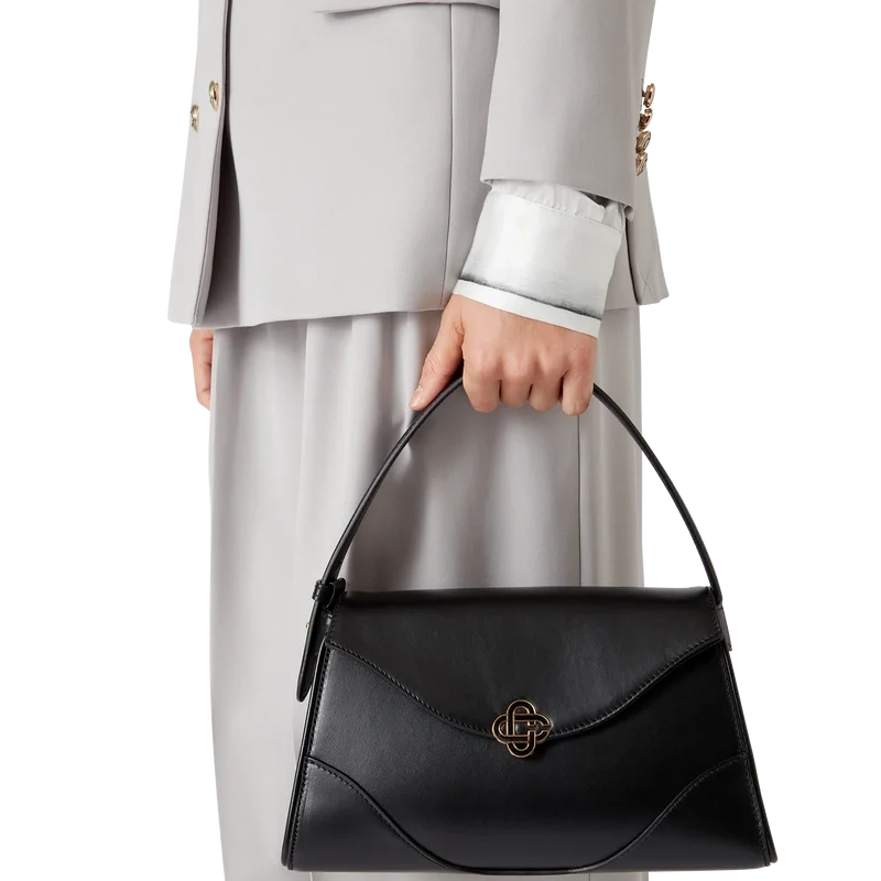 De zwarte kleine Jeanne-tas is vervaardigd uit Italiaans kalfsleer en versierd met het rode Diamond Monogram van het huis op hoogwaardige metalen hardware, die dient als sluiting. Afgewerkt met een afneembare riem, twee hoofdvakken, een canvas voering en een intern steekvak. Geleverd met een stofzak met merklogo en doos.