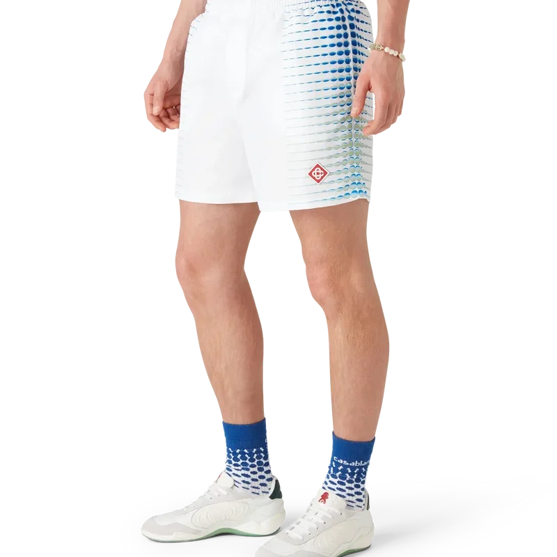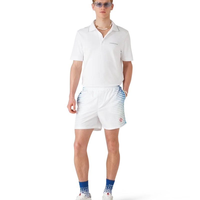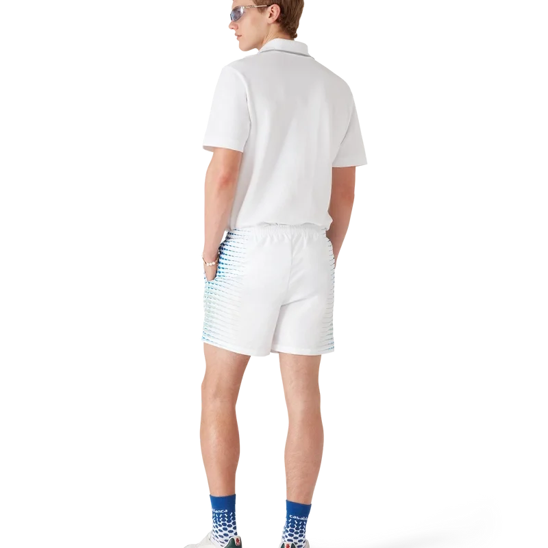 De bedrukte zwemshort heeft een verfijnd ontwerp met kunstwerk dat is gemaakt in samenwerking met Martin Naumann, bekend om zijn werk met kleurverlopen en textuureffecten, waarbij hij halftoon- en glasachtige effecten creëert. Afgewerkt met een elastische tailleband, een trekkoord aan de binnenkant, zijzakken in de naad en een voering.