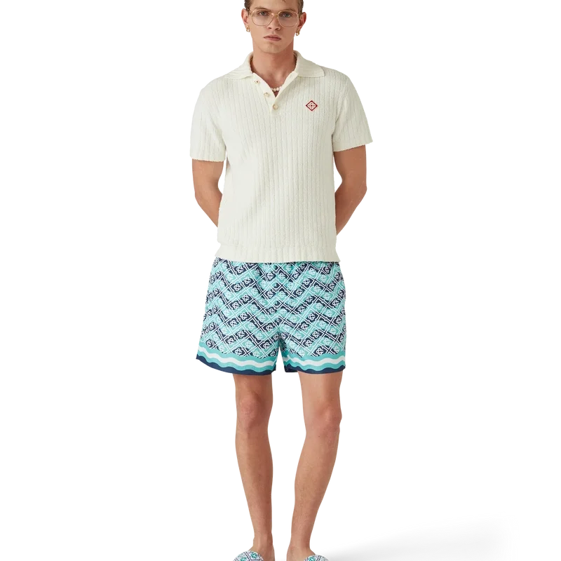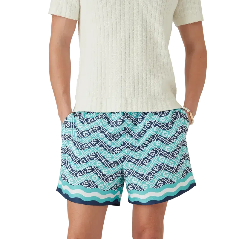 De Monogram Wave-shorts zijn een ontwerp voor badmode vervaardigd uit stof met Monogram Wave-print. Afgewerkt met een elastische tailleband met een interne trekkoordsluiting, zijzakken in de naad, een binnenzak en een voering.