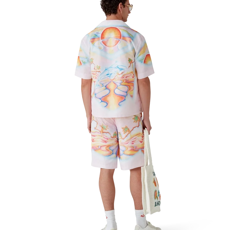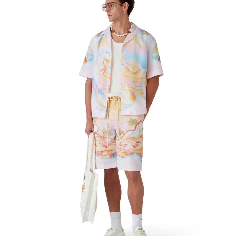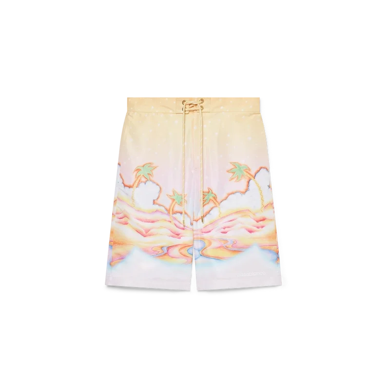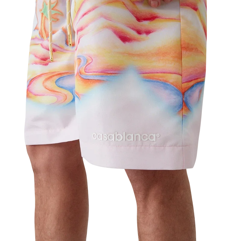 De Psychedelic Nirvana zwemshort is een knielange zwemshort gemaakt van bedrukte zwemstof met kenmerkende kunst, geïnspireerd op de geairbrushte surfplanken uit de jaren ’70 in Californië, met pastelkleuren die de print een bijna dromerig, idealistisch gevoel geven. Afgewerkt met een elastische tailleband, trekkoordsluiting, voorzakken en een voering van netstof.