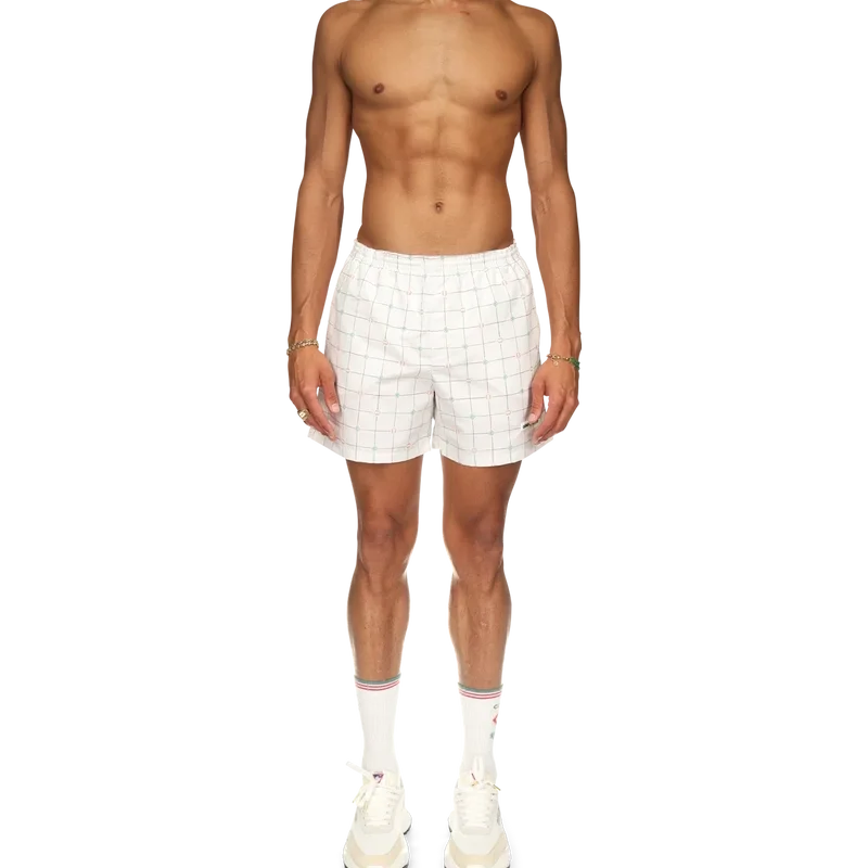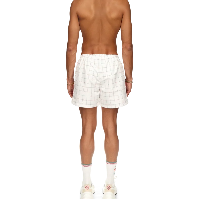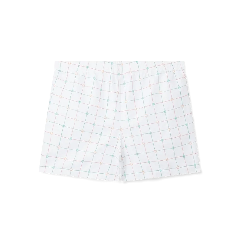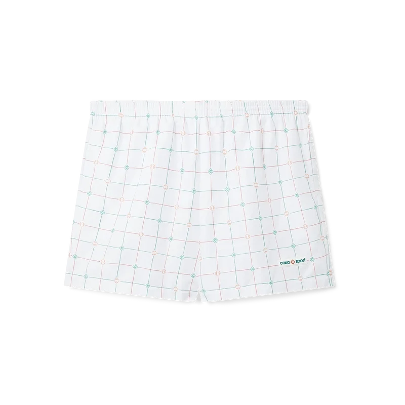 De tennis-Shorts met ruitmotief is gemaakt van technisch polyester met een oranje en groen ruitmotief van Casablanca Paris. Afgewerkt met een elastische tailleband, trekkoordsluiting en zijzakken.