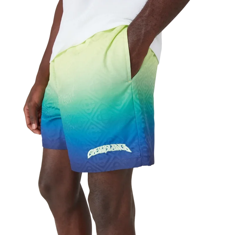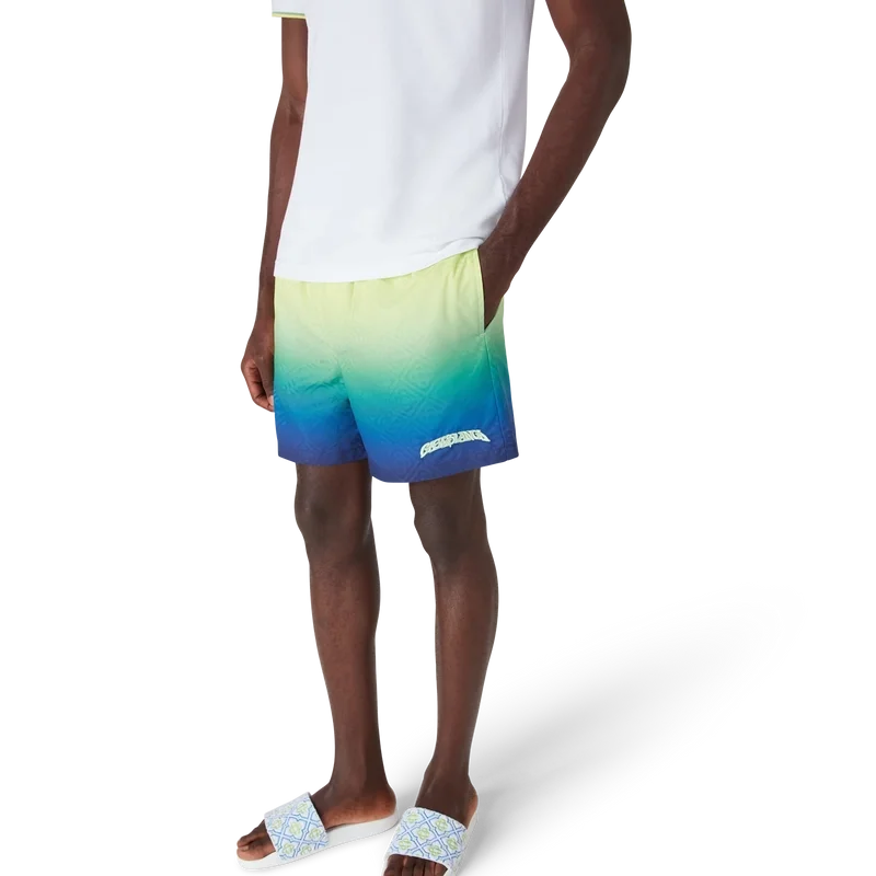 De Gradient Monogram zwemshort heeft een verfijnd technisch ontwerp met kleurverloopdetails. Afgewerkt met een elastische tailleband, trekkoordsluiting, zijzakken in de naad en het kenmerkende Monogram-patroon van het huis dat de verfijnde Apras-Sport-elegantie belichaamt.