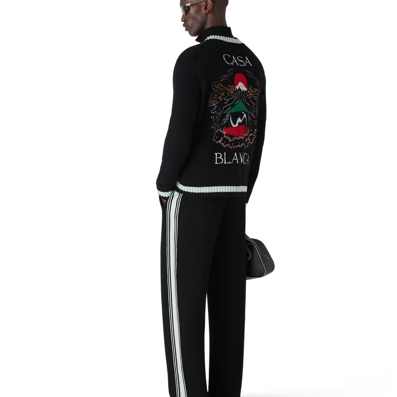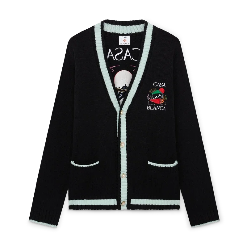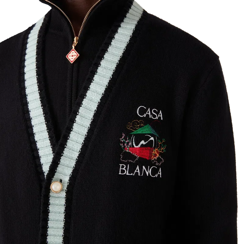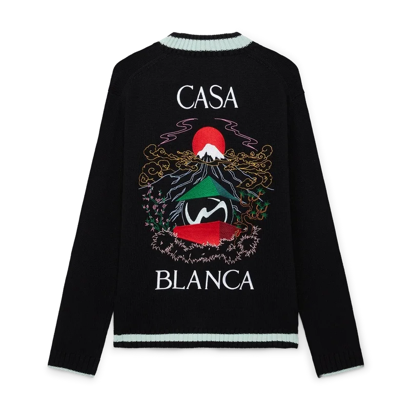 Het Casa Mountain Temple-vest is een ontwerp met lange mouwen en geborduurde seizoensgebonden illustraties, vervaardigd van merinowol. Afgewerkt met een klassieke ronde hals, geribde manchetten en zoom.