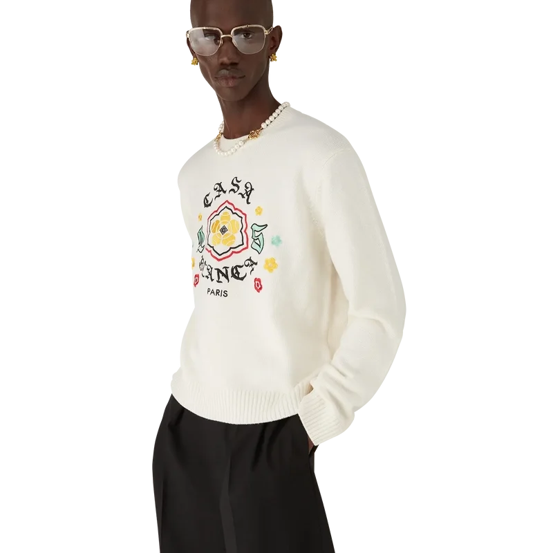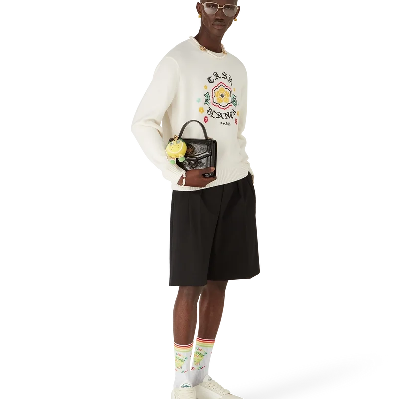 De Emblem Merino Knit Crew Neck is een trui met lange mouwen met de artwork van dit seizoen, waarbij we inspiratie hebben gehaald uit de Japanse subcultuur van BōSōZoku voor een van onze hoofdthema’s. Het contrast tussen grafische elementen en tekst deed ons erg aan Casablanca denken. We hebben onze eigen interpretatie van BōSōZoku-kunst gecreëerd, met zinnen die het merk beschrijven, zoals “Looking at the Beauty of the World.” De lay-out is onconventioneel, maar de compositie is zorgvuldig uitgebalanceerd, wat het een unieke en toch harmonieuze uitstraling geeft. Afgewerkt met een klassieke geribde hals, manchetten en zoom.
