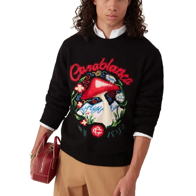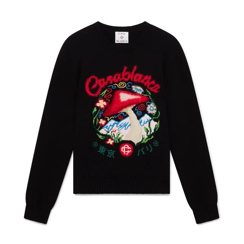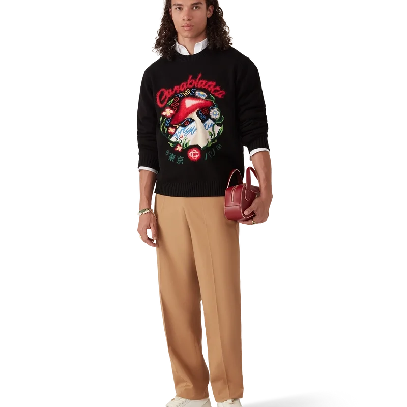De katoenen trui met paddenstoelenborduursel is een model met lange mouwen en een van de kenmerkende ontwerpelementen van het huis – de paddenstoel – vervaardigd uit katoen. Afgewerkt met een klassieke ronde hals, geribde manchetten en zoom.