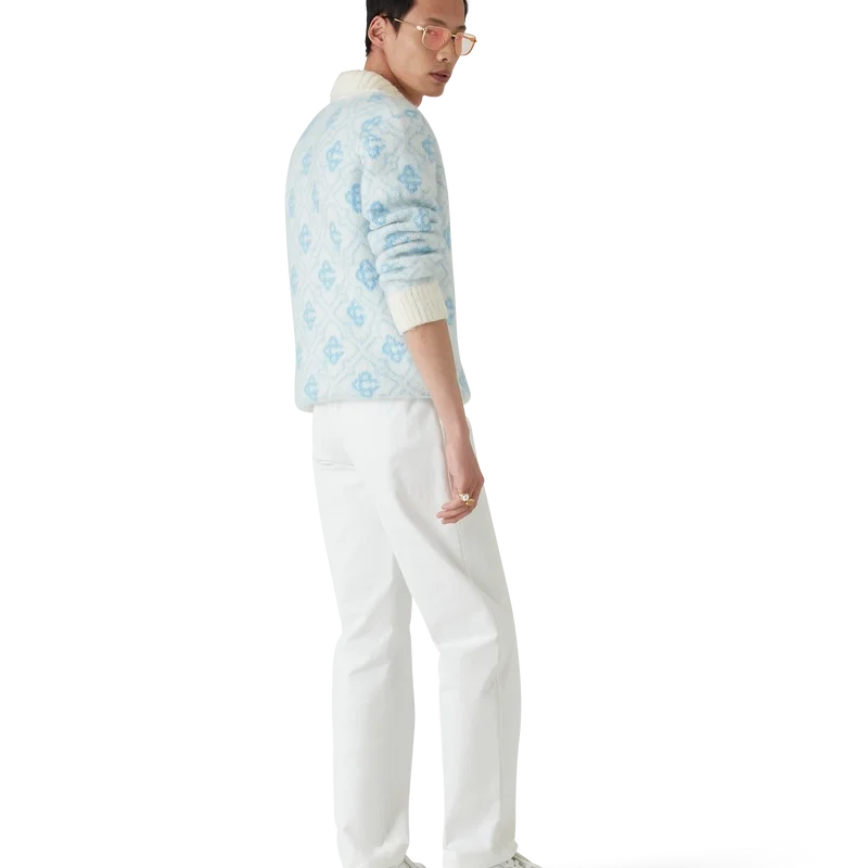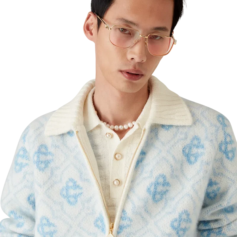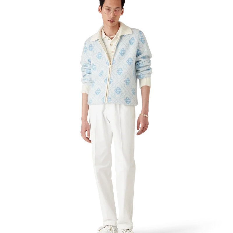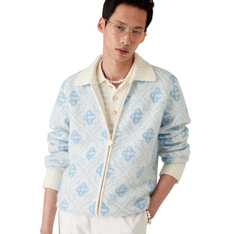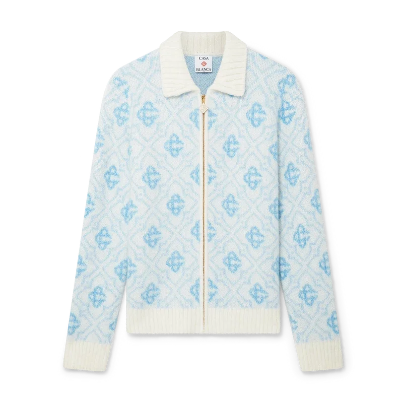 De Monogram Mohair-trui met rits is een Monogram-ontwerp met lange mouwen, vervaardigd uit mohairstof. Afgewerkt met een ritssluiting, kenmerkend ritslipje met diamantlogo, geribde kraag, manchetten en zoom.