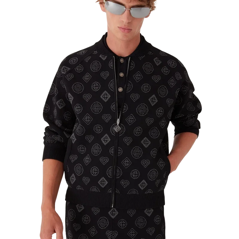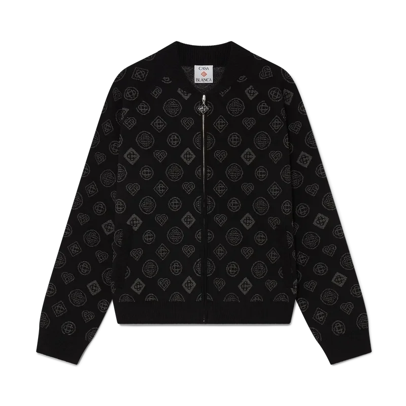Het Monogram Jacquard bomberjack is een ontwerp met lange mouwen en het Honeydew-logo van het huis in een herhalend patroon. Dit patroon verschilt van onze andere monogrammen, omdat het unieke vormen combineert tot een samenhangend geheel. Het is meer een op iconen gebaseerd ontwerp. Afgewerkt met een ritssluiting, schuine voorzakken, een geribde kraag, manchetten en zoom.