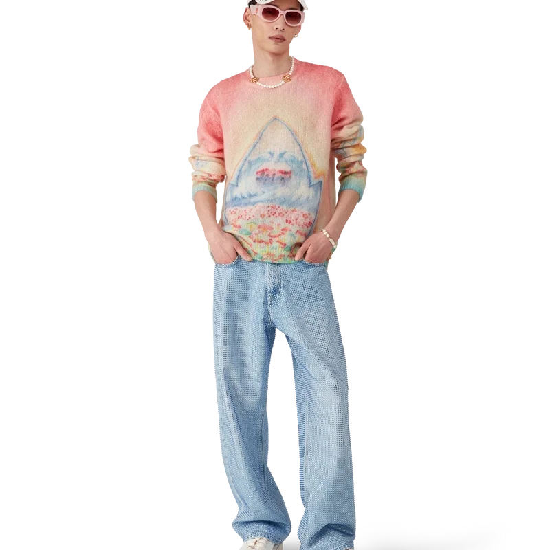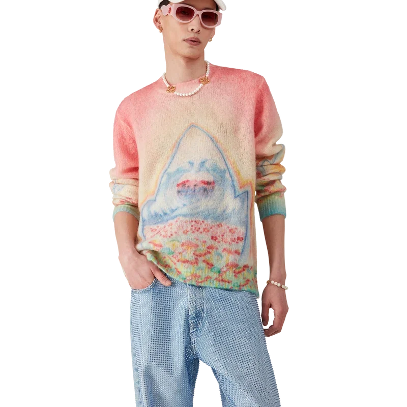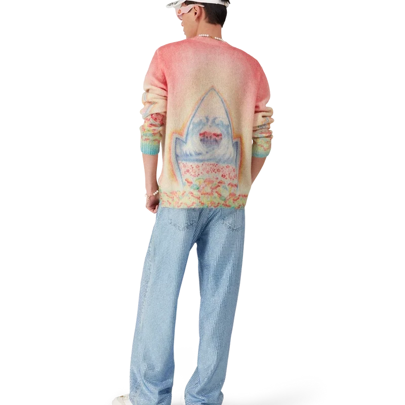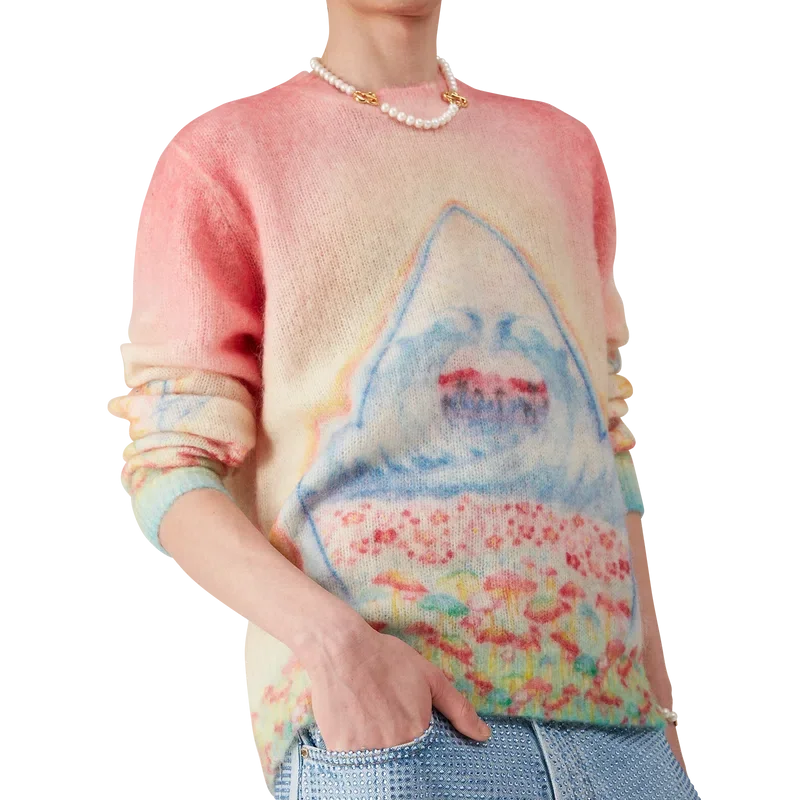 De Psychedelic Nirvana-trui is een gebreid ontwerp met lange mouwen, vervaardigd uit een wolmix. Afgewerkt met een klassieke geribde ronde hals en manchetten.
