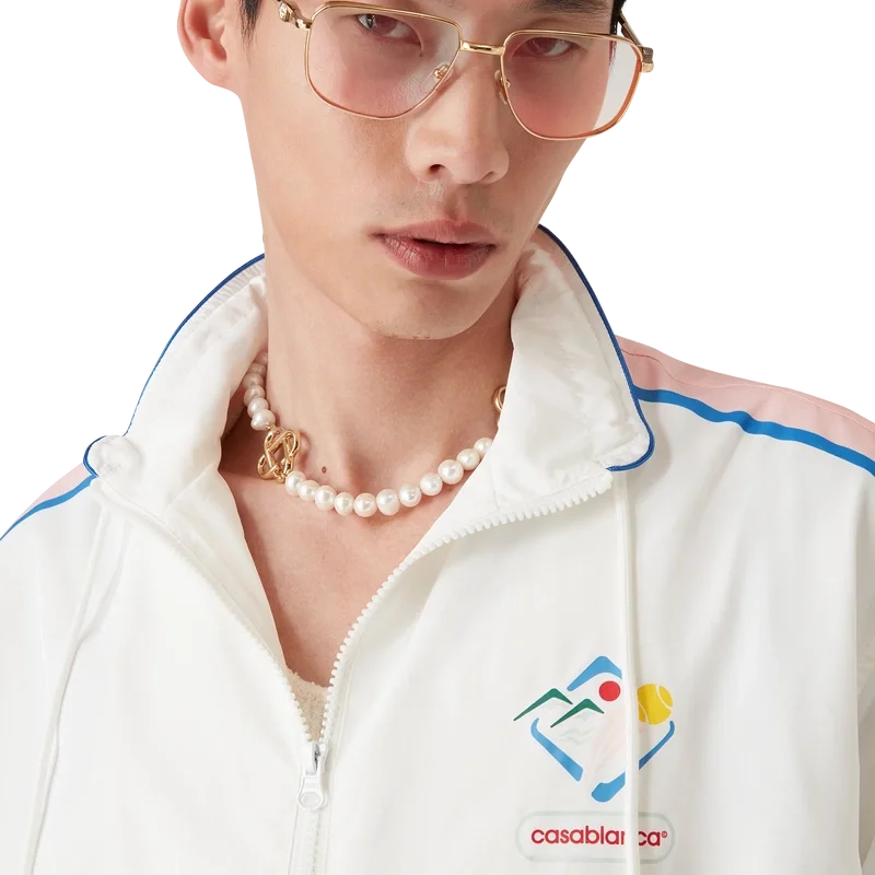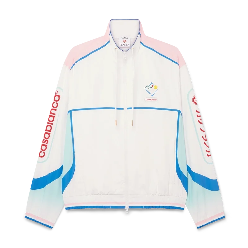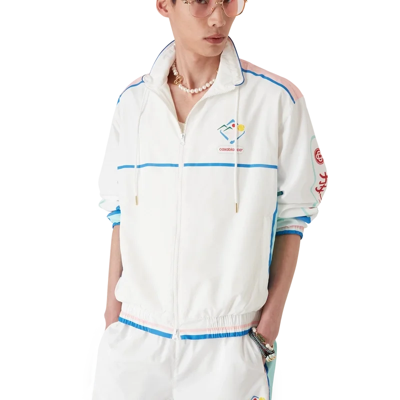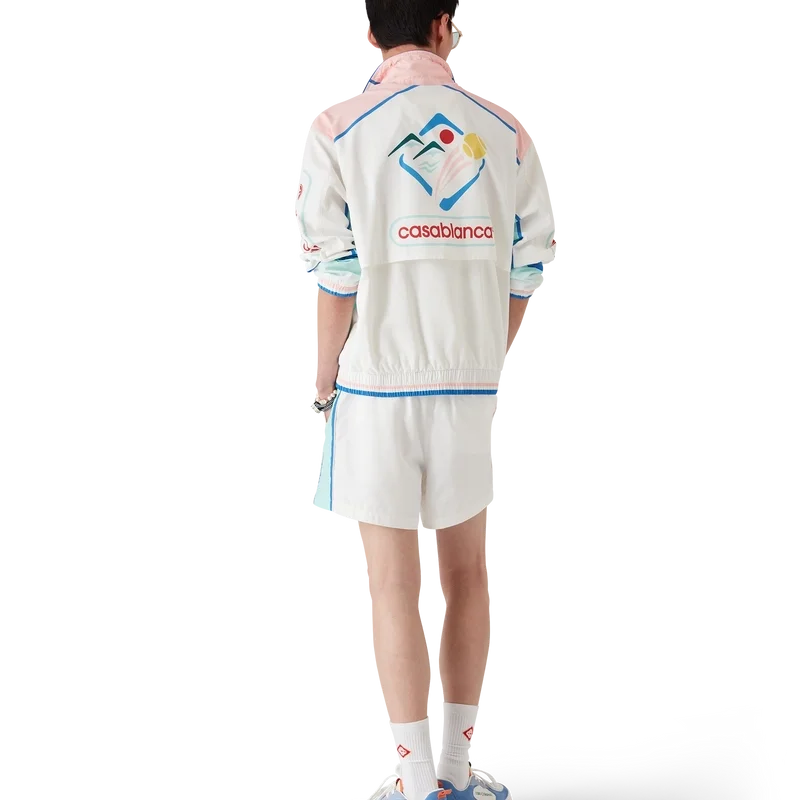 Het Casa Sportif windjack is een sportief ontwerp, vervaardigd uit technische taffeta en voorzien van de seizoensillustraties geïnspireerd op Japan.