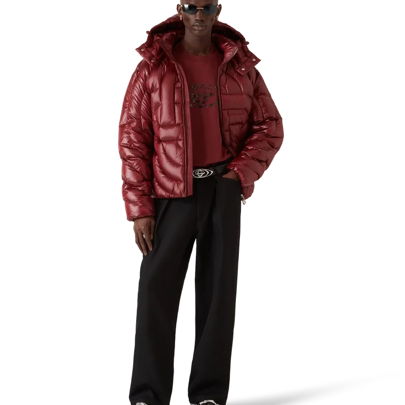 Het gewatteerde pufferjack is een verfijnd ontwerp met het kenmerkende Diamond Monogram van het huis op de voor- en achterkant, vervaardigd van gewatteerde stof met donsvulling en voorzien van lange mouwen. Afgewerkt met een afneembare capuchon, een ritssluiting met een kenmerkend diamantlogo op het ritslipje, inzetzakken aan de zijkanten, een zak op de mouw, elastische verstelbare lipjes aan de zoom en capuchon met in elkaar grijpende CC-logo-knopjes, en manchetten met Casablanca-band.