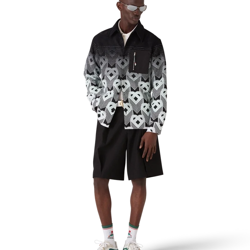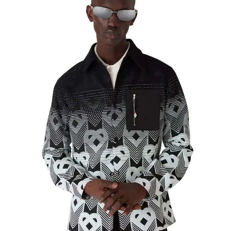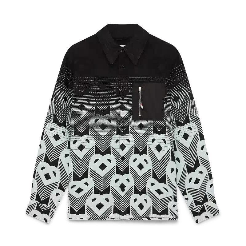 Het Monogram Gradient Shacket is een ontwerp met lange mouwen, vervaardigd uit een jacquard bouclé-stof. Afgewerkt met een kraag, een borstzak, knoopsluiting en vergulde knopen met merklogo.