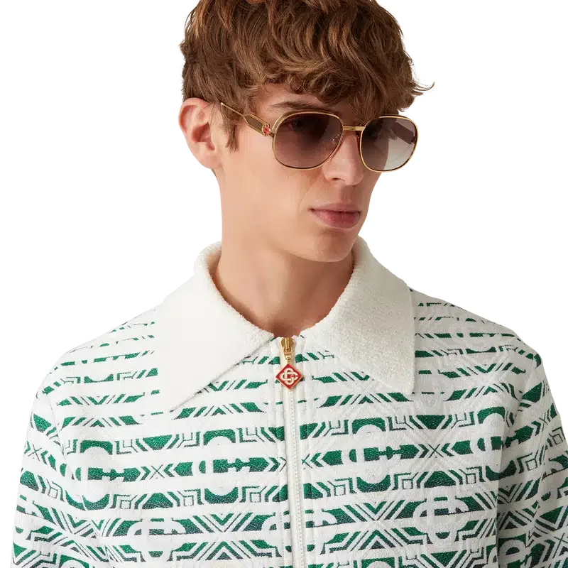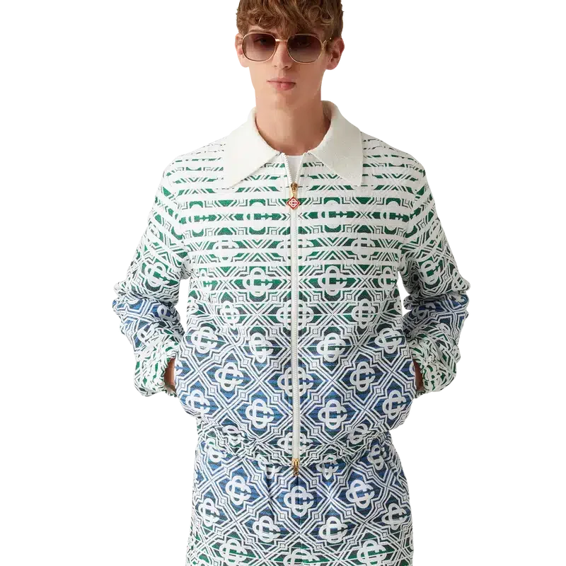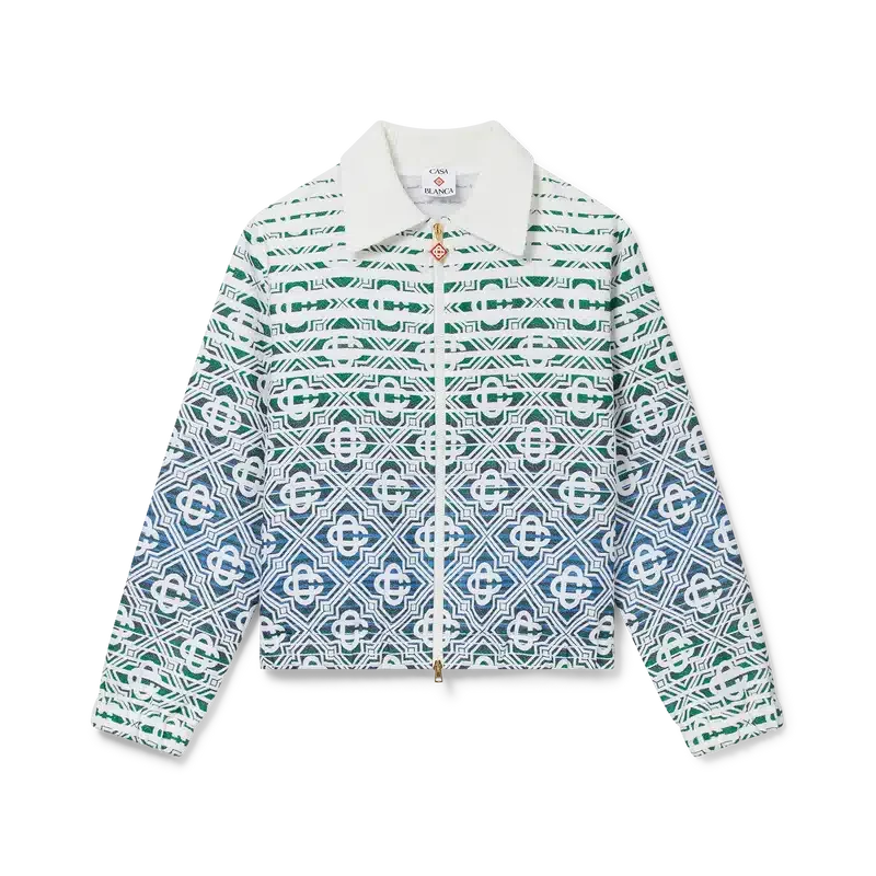 Het Monogram Gradient badstof jasje is een zacht gestructureerd ontwerp met een klassiek silhouet, vervaardigd uit badstof met kleurverloop en voorzien van het kenmerkende Diamond Monogram van het huis. Afgewerkt met een ritssluiting, vergulde details en een opstaande kraag. 100% polyester