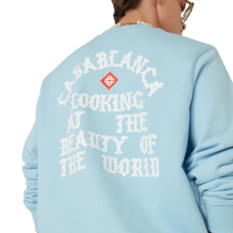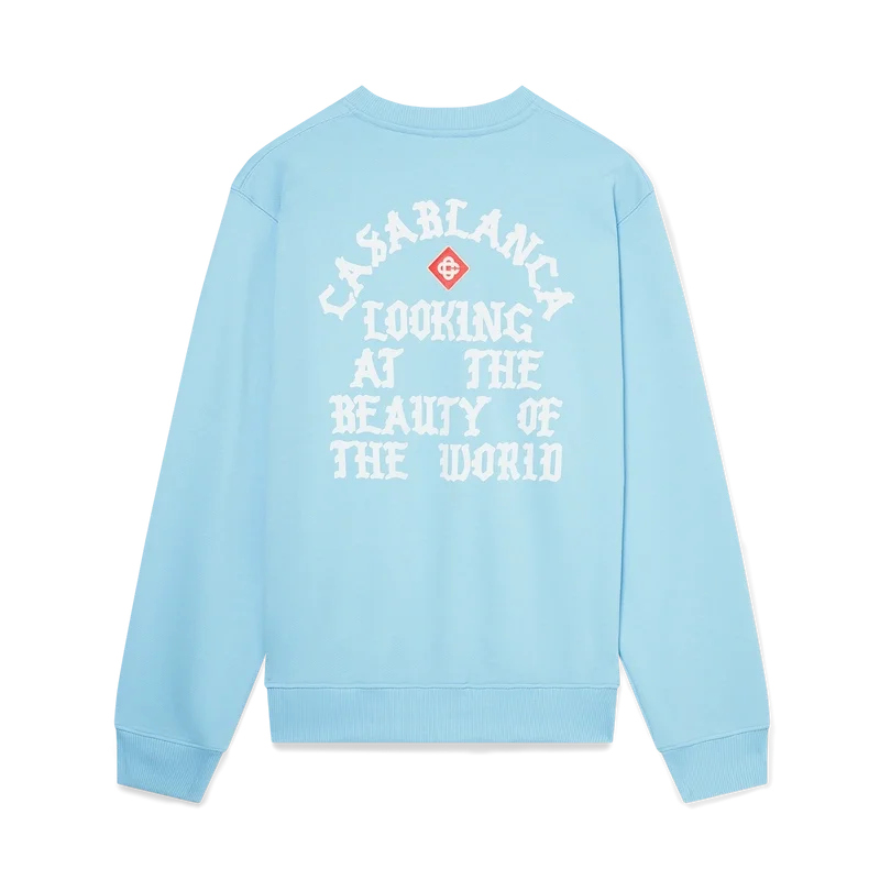 Het Beauty of the World-sweatshirt is een bedrukt ontwerp met lange mouwen, voorzien van het kenmerkende diamantlogo van het huis en het motto van het merk Casablanca in gotische typografie, geïnspireerd door de straatcultuur. Afgewerkt met een klassieke ronde hals en geribde manchetten en zoom.