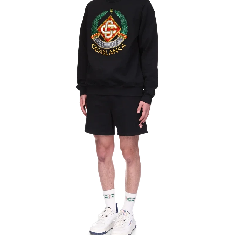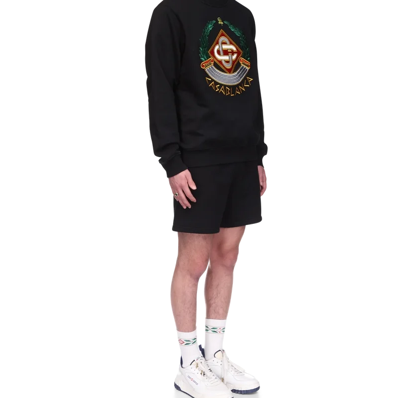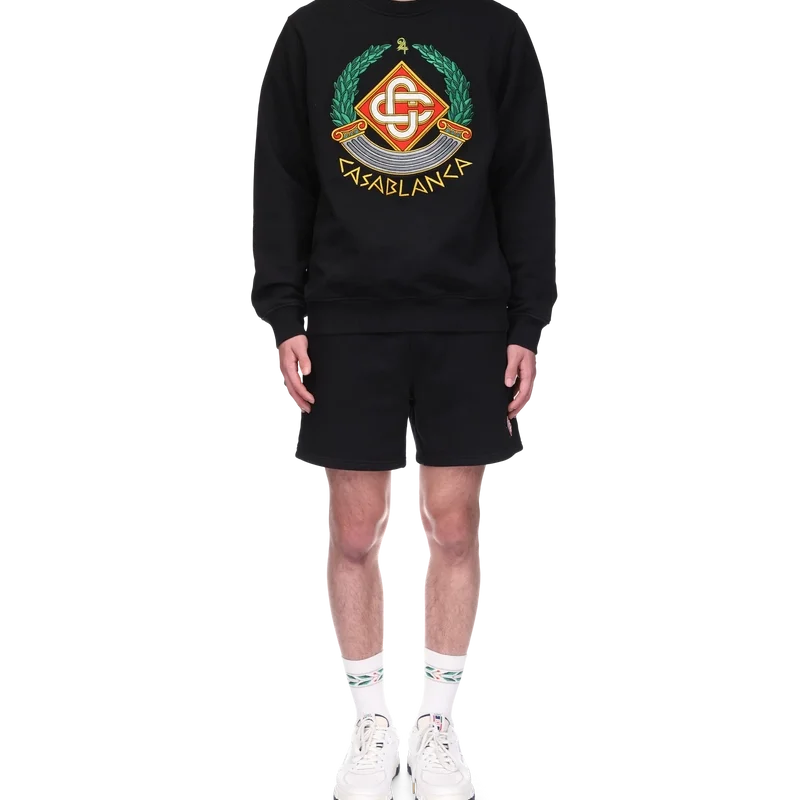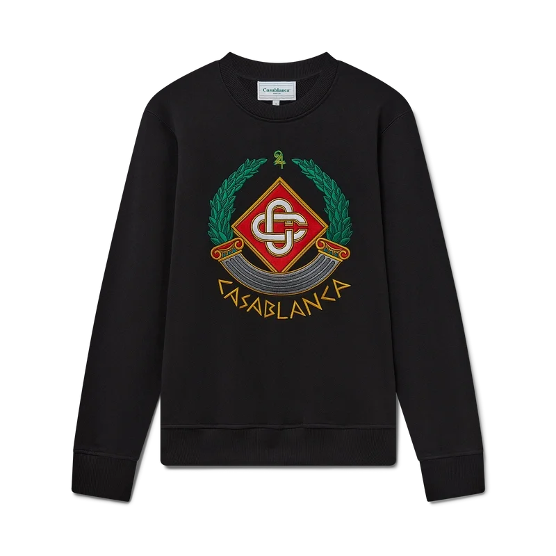 Het Casa Crest-sweatshirt is een ontwerp met lange mouwen, vervaardigd uit biologisch katoen. Het is voorzien van het huiselijke spel op de zuil als iconografie van Griekenland en onze versie van een vervormd logo, waardoor een beeld ontstaat van wat een Casa Crest in de oudheid zou kunnen zijn geweest. Afgewerkt met het kenmerkende in elkaar grijpende Cc-logo van het huis, de tekst ‘Casablanca’ geschreven in een oud-Griekse stijl, een klassieke ronde hals en geribde manchetten en zoom.