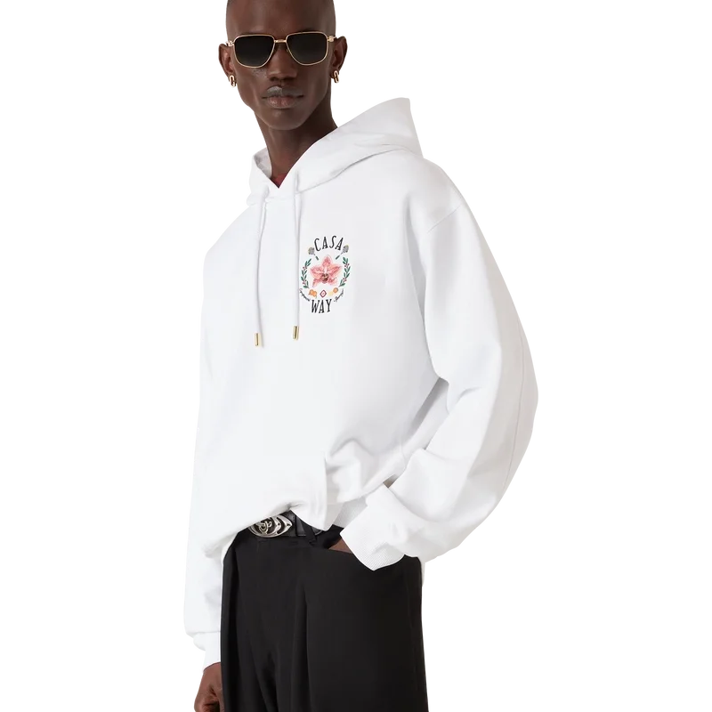 Het Casa Way Orchid-sweatshirt met capuchon is een verfijnd ontwerp met lange mouwen, voorzien van het Casa Way Orchid-kunstwerk van dit seizoen, dat digitale kunst verkent door de voortzetting van de dialoog tussen technologie en de natuur. Afgewerkt met een capuchon, trekkoordsluiting en geribde manchetten en zoom.