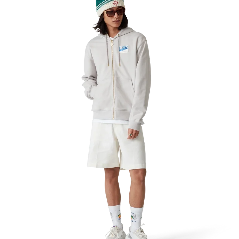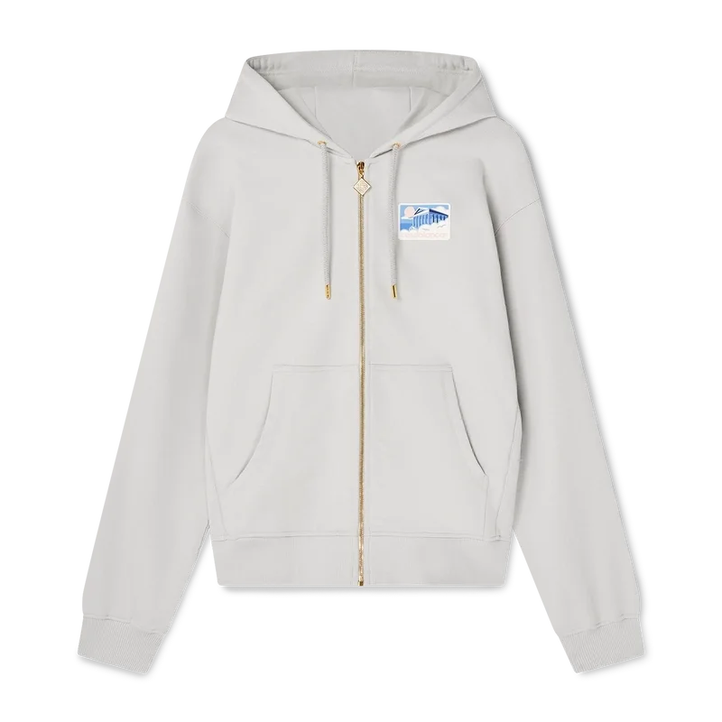 Het Greek Temple-sweatshirt met capuchon is gemaakt van biologisch katoen en voorzien van een siliconen patch. Afgewerkt met ritssluiting aan de voorkant, opgestikte zakken aan de voorkant, een capuchon met trekkoord met gouden uiteinden en geribde manchetten en zoom.